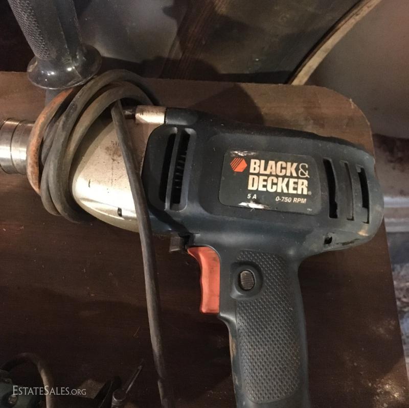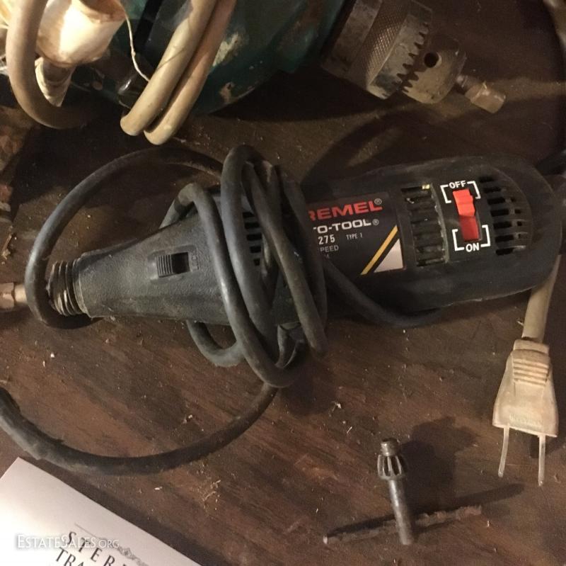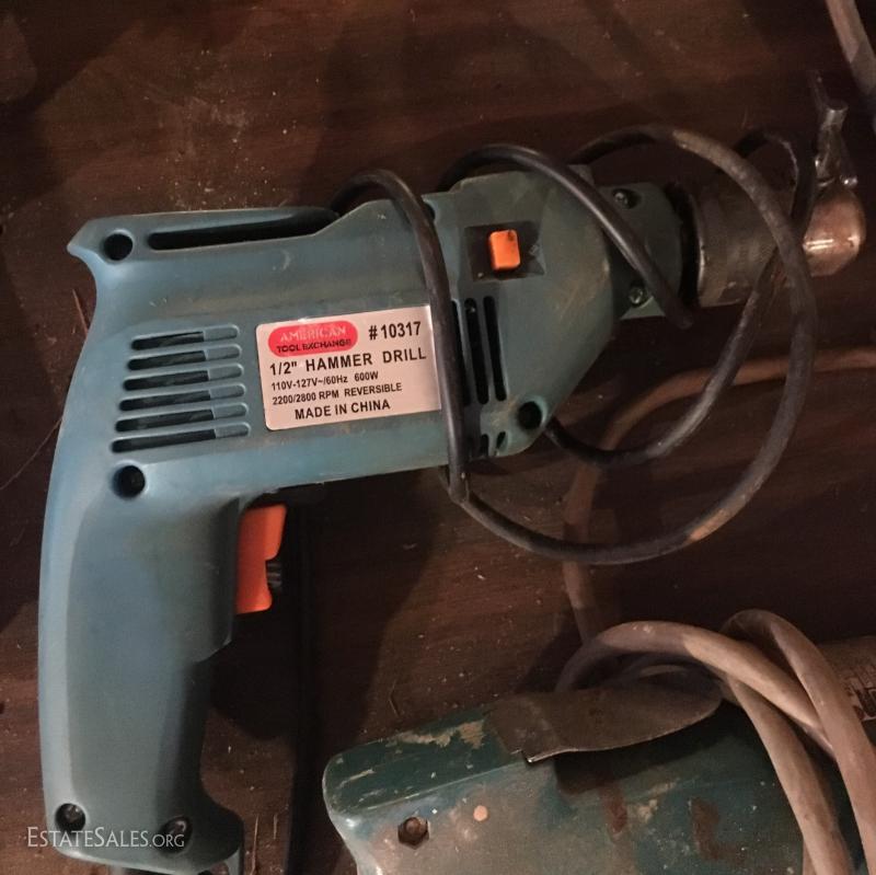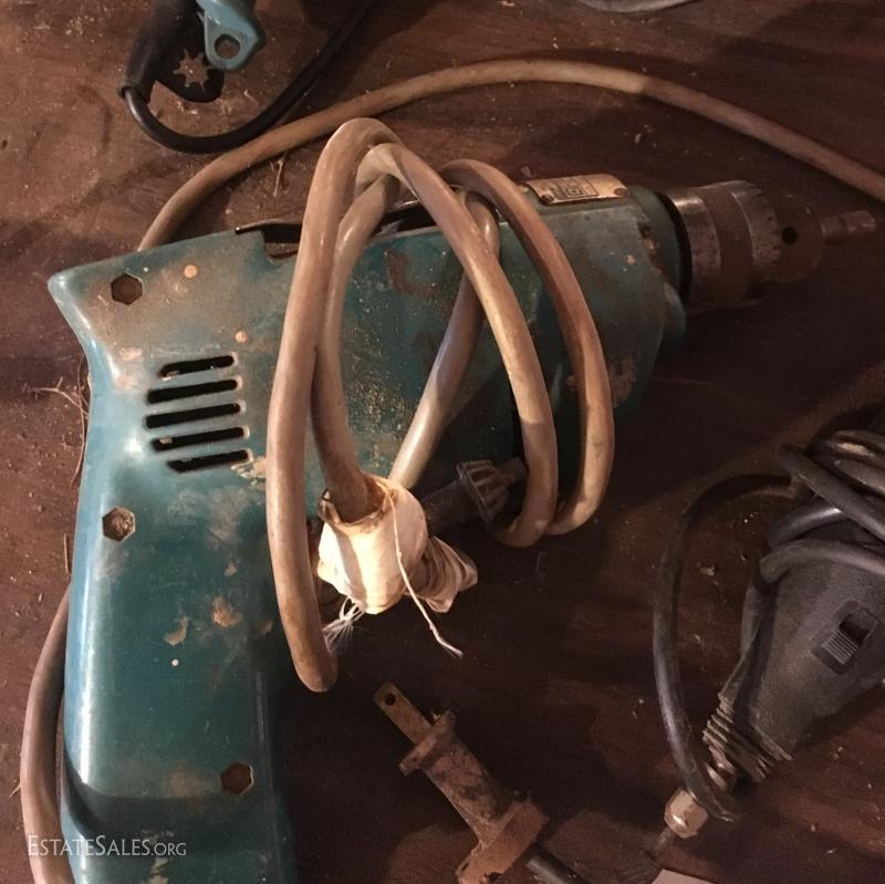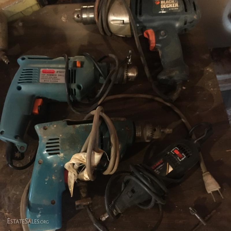 American ½”Hammer Drill, B&D 5A 0-750rpm, Makita drill, Dremel motor tool model 275. All in operating condition.
