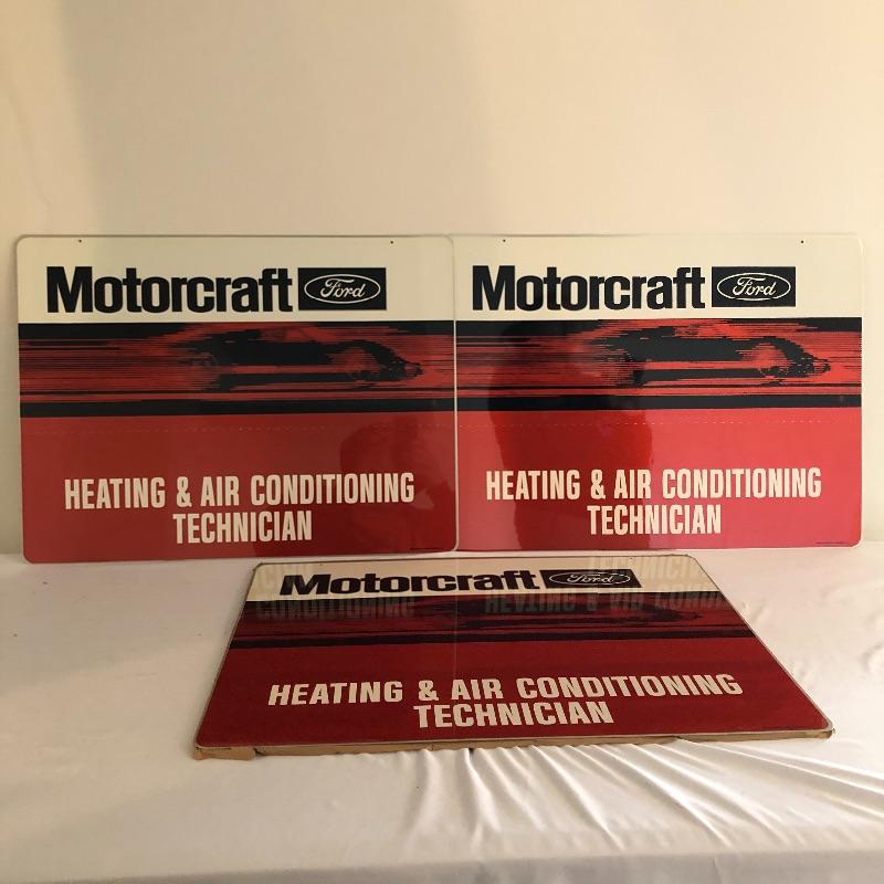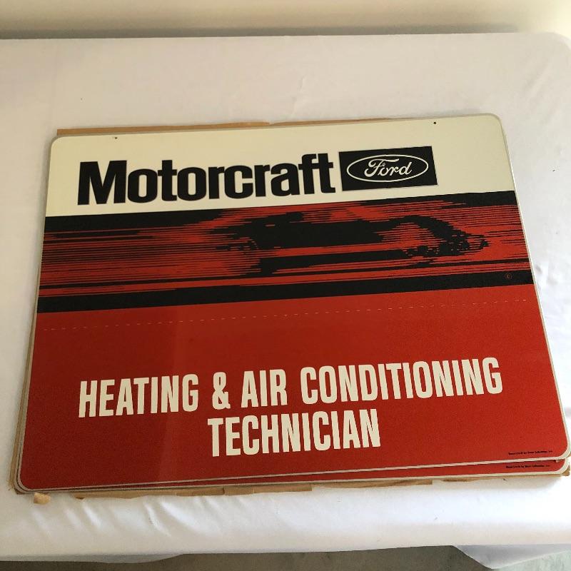 Get your Ford friends a great gift with these Motorcraft Signs. All signs are the same and say Ford Motorcraft heating and air conditioning technician. Lot includes seven signs made of aluminum.