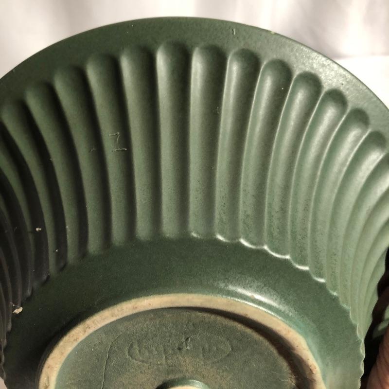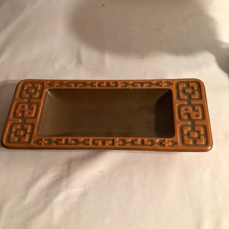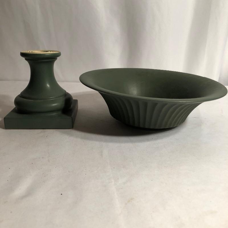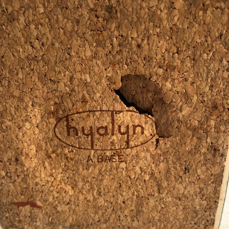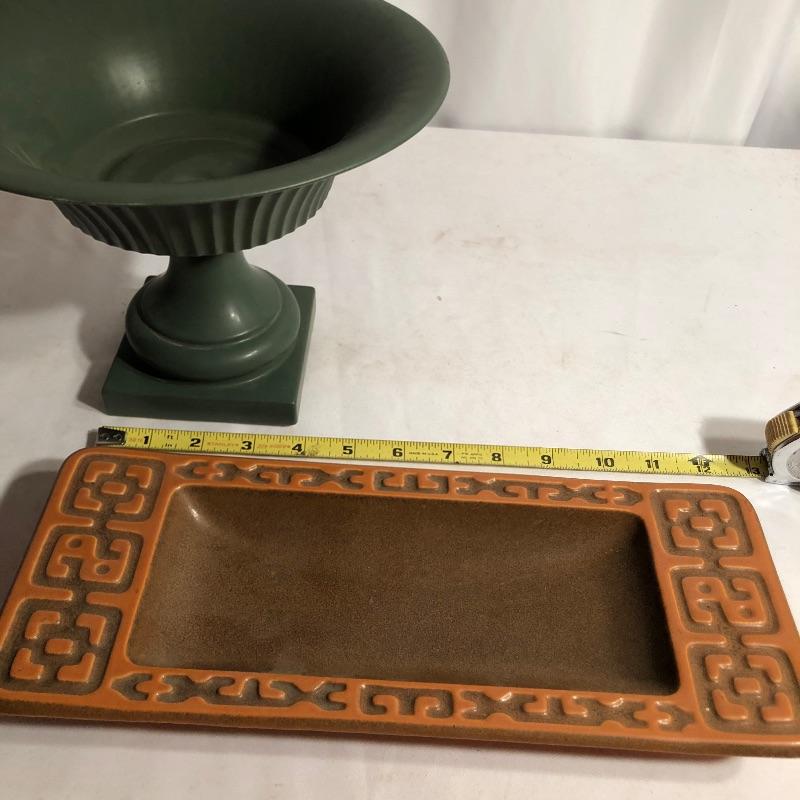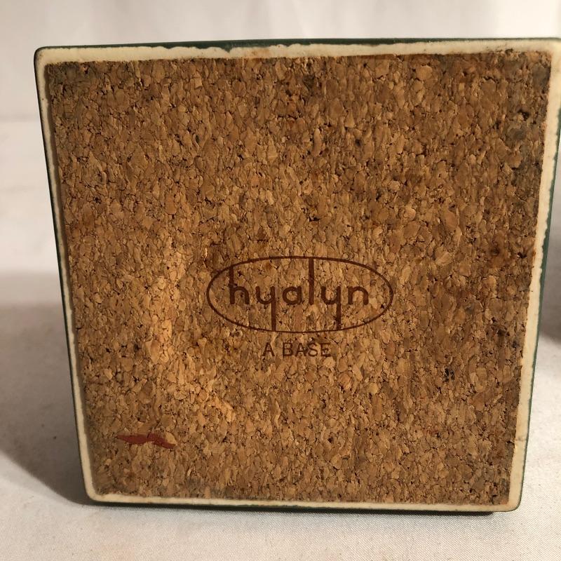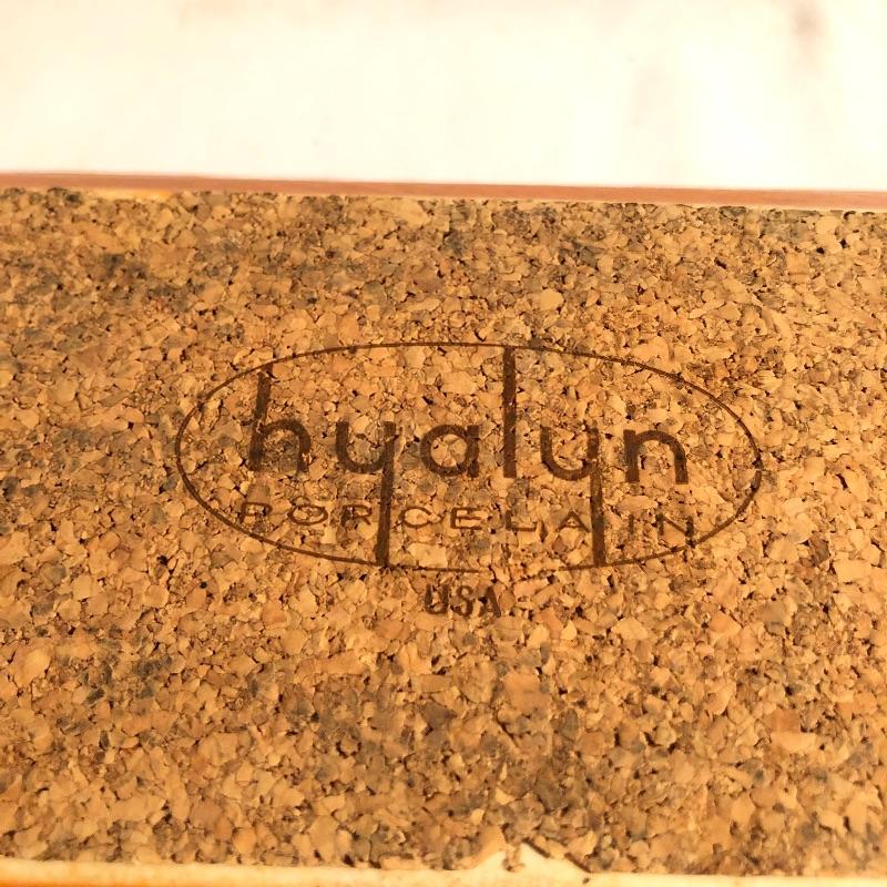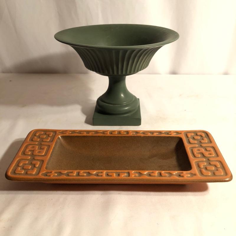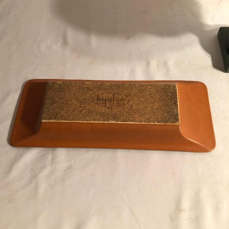 Two beautiful pieces of Hyalyn porcelain here that includes a green pedestal bowl and a small platter. The bowl detaches from its base and the platter is an ideal size for snacks or as a key and change holder. Both pieces have cork bases with the makers marks.