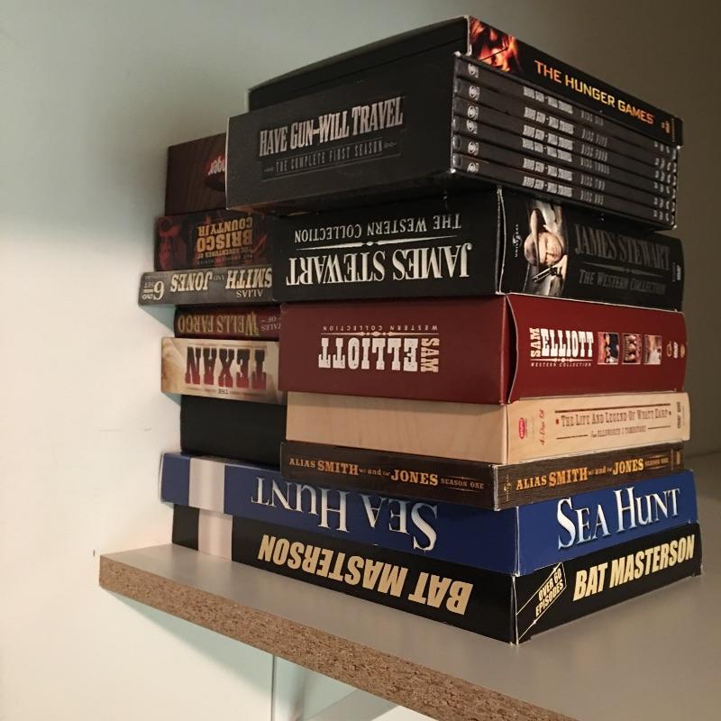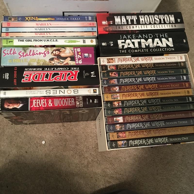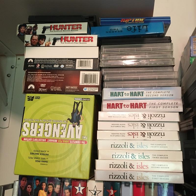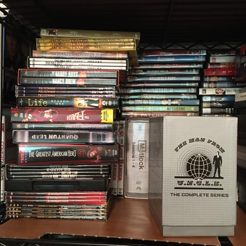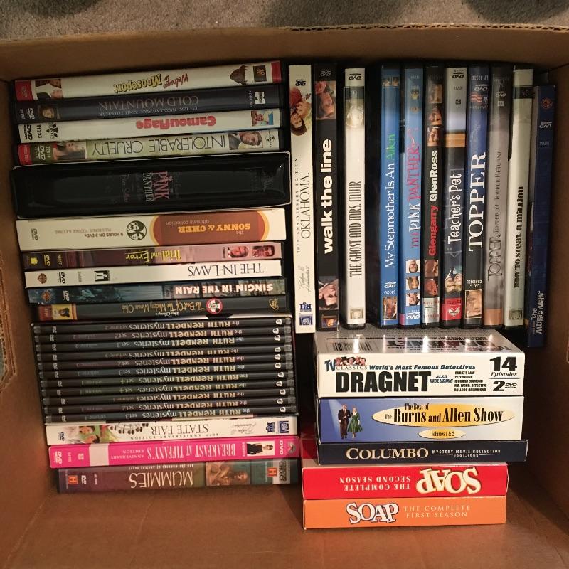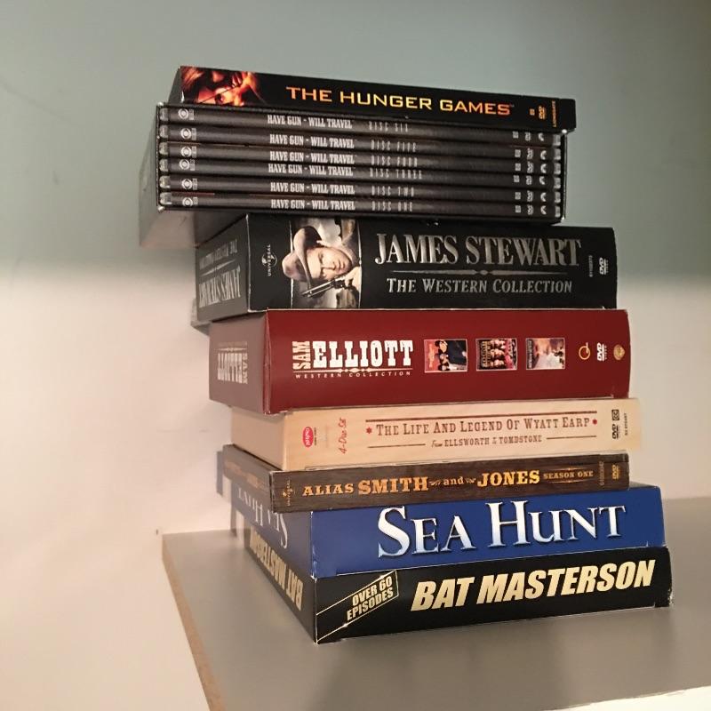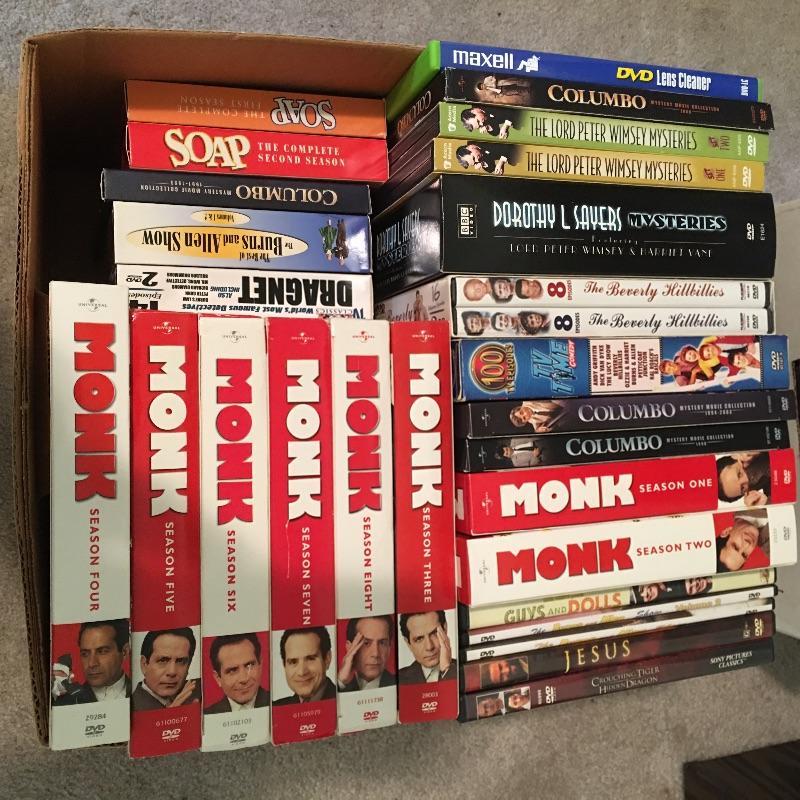 You should be able to cancel your Netflix and binge watch theses DVDs for years! This lot includes hundreds of DVDs movies and series collections including Star Trek, Batman Anthology, Superman, Monk, Ben Hur, Magnum P. I., Dukes of Hazzard and so many more, see pictures for more titles. Also includes three DVD stands. Large black bookcase is not included, but available in lot 197. Largest DVD stand measures 22” x 6” x 47”.