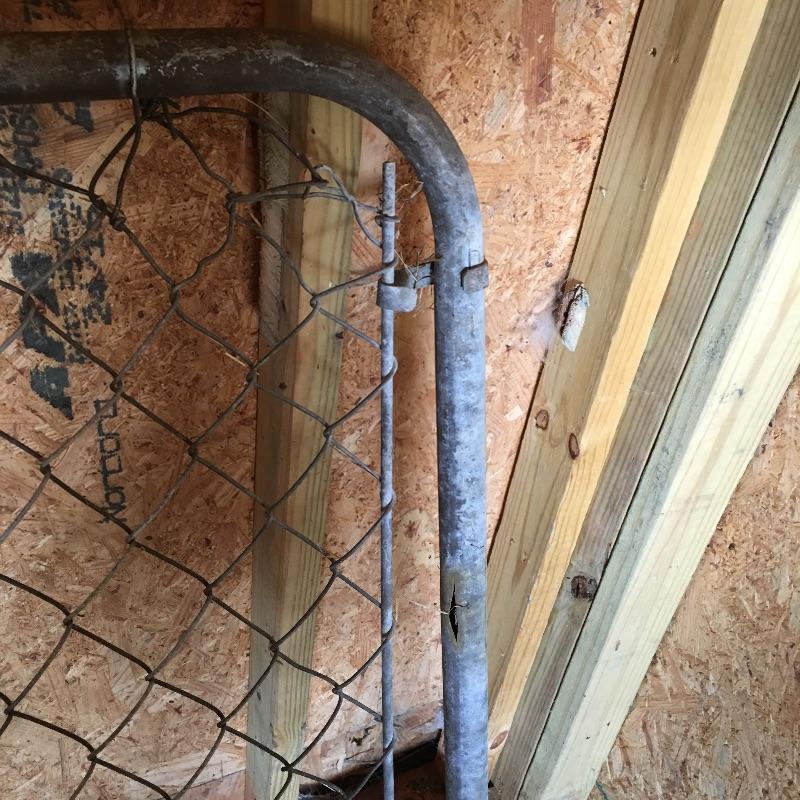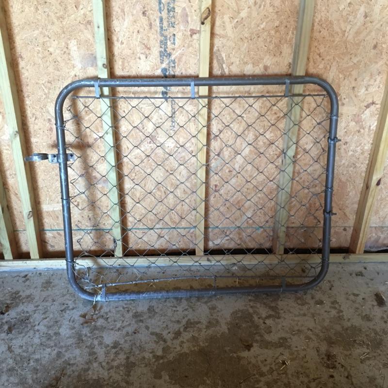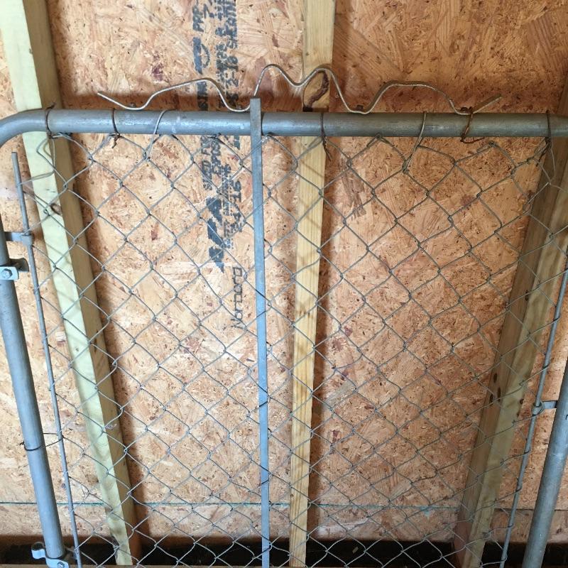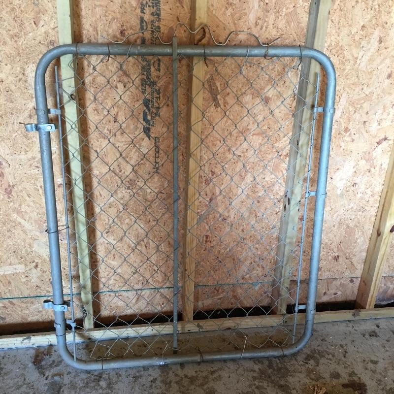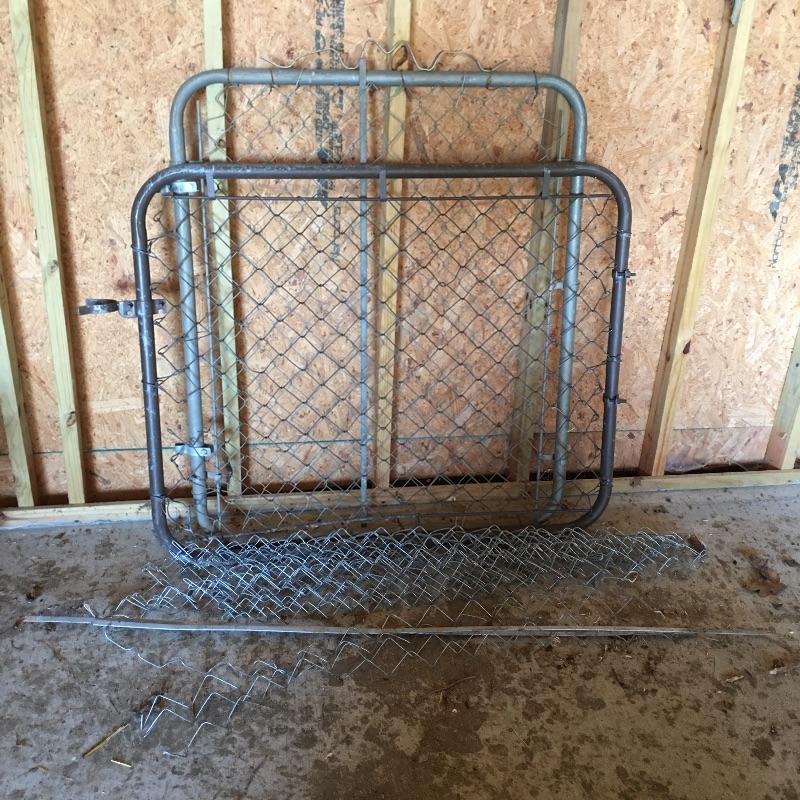 These lot includes two chain link gates with one set up vertical and one horizontal, but they can be changed by moving hinge point. One gate has broken links, see pictures. Lot also includes section of chain link fence (see picture). Gates measures 38” x 46”.