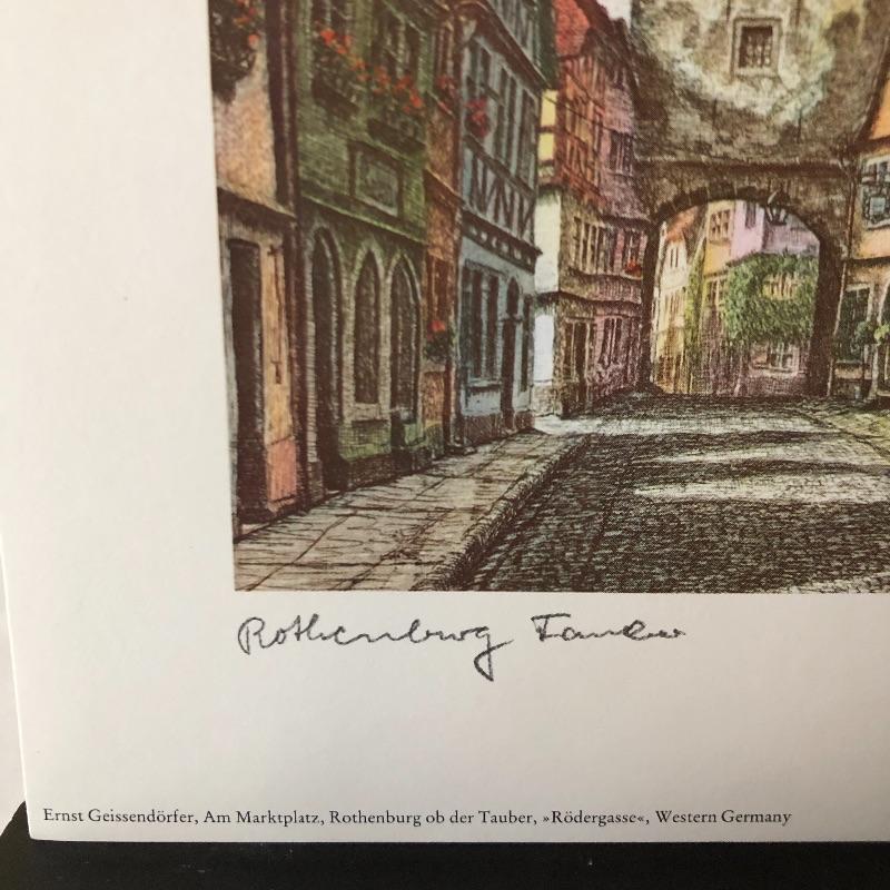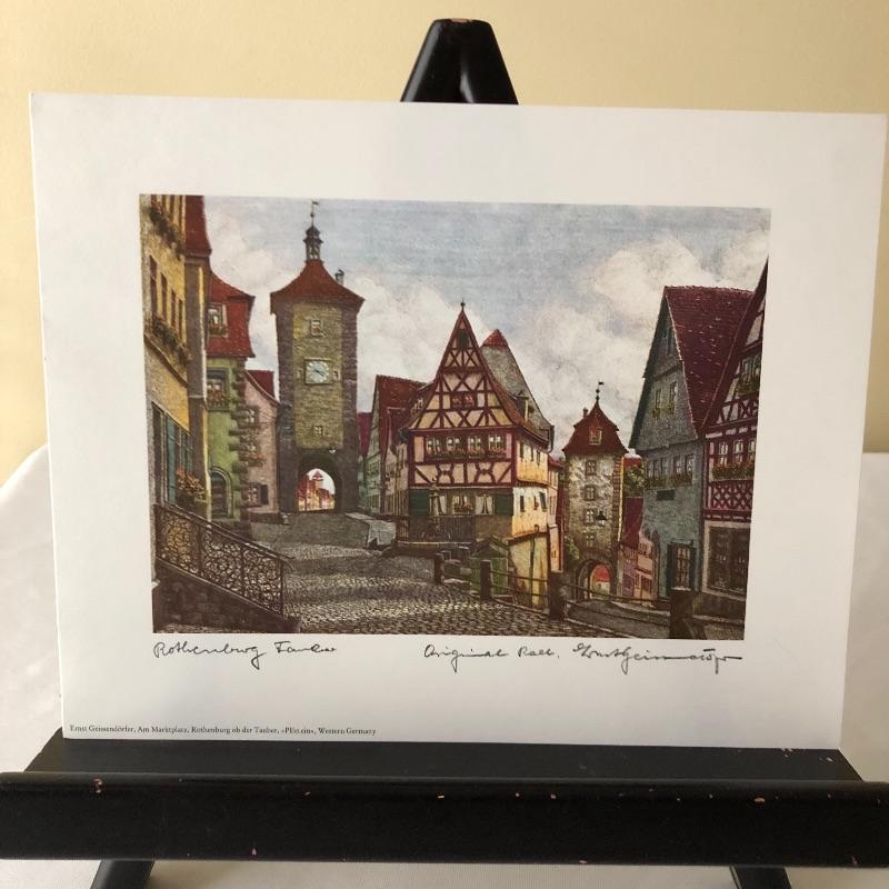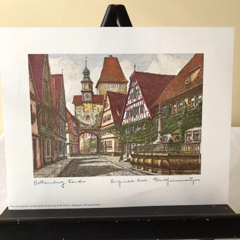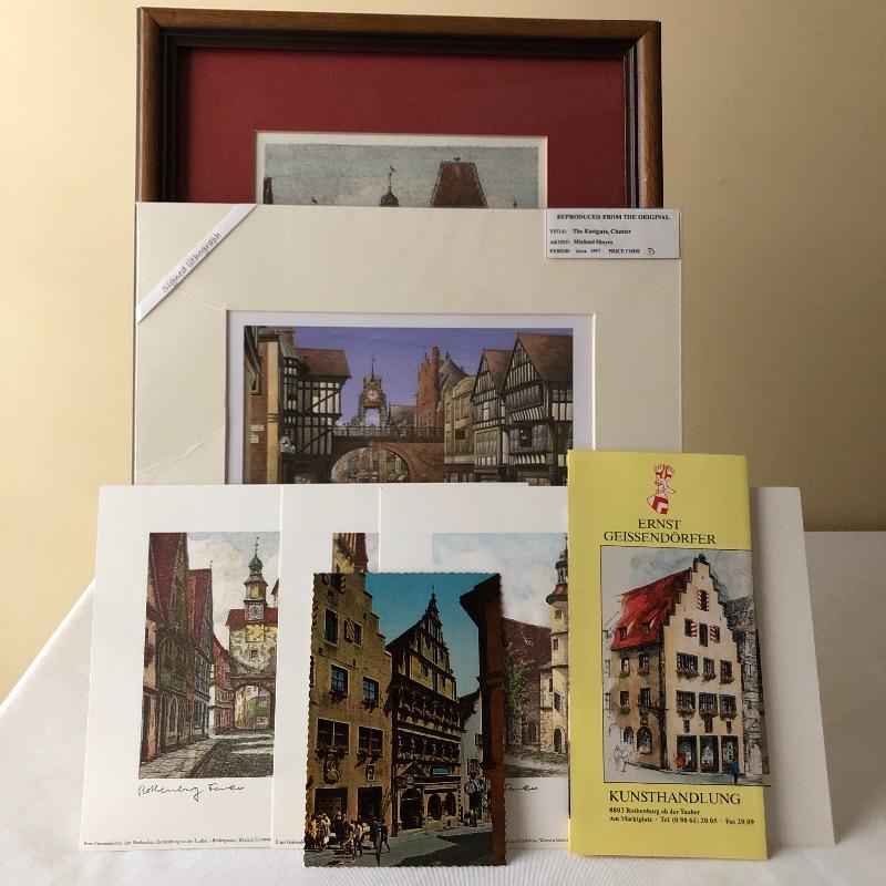 Lovely collection of Rothenburg Tauber art, including a matted, framed and ready to hang print, 3 smaller prints by Ernst Geissendörfer waiting for you to matte, frame and make your own, as well as a signed and numbered reproduced lithograph by artist, Michael Hayes.