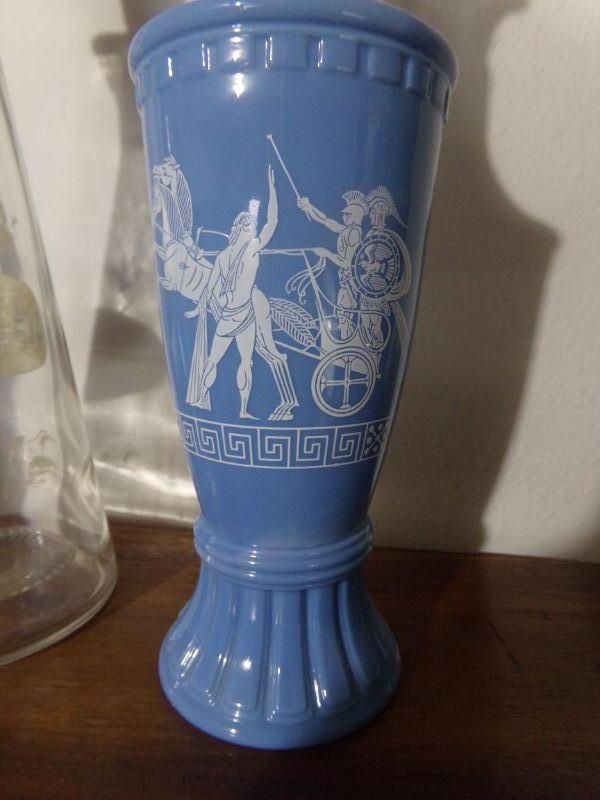 1960 JIM BEAM BLUE/WHT DECANTER W/ GREEK CHARIOT