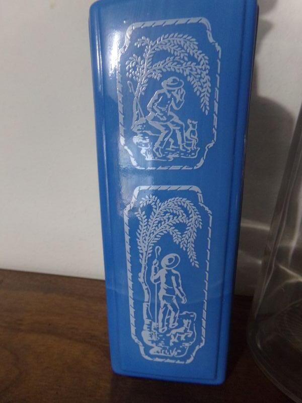 VINTAGE 1965 JIM BEAM BLUE/WHITE MILK GLASS BOTTLE-SHEPARD & DOG,