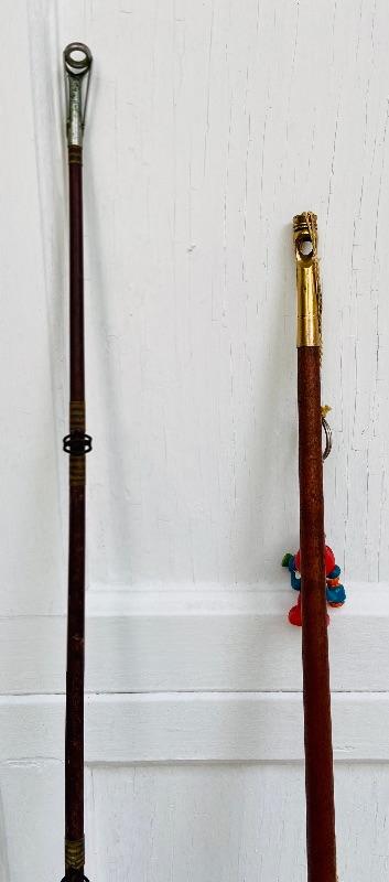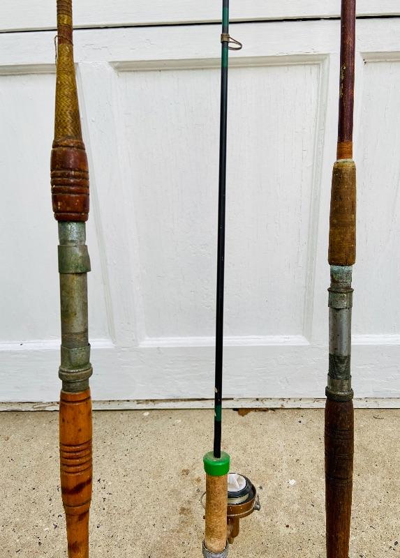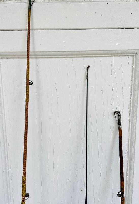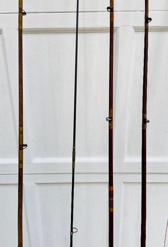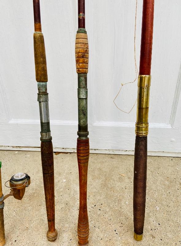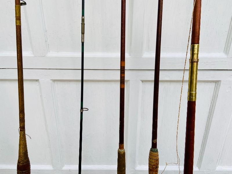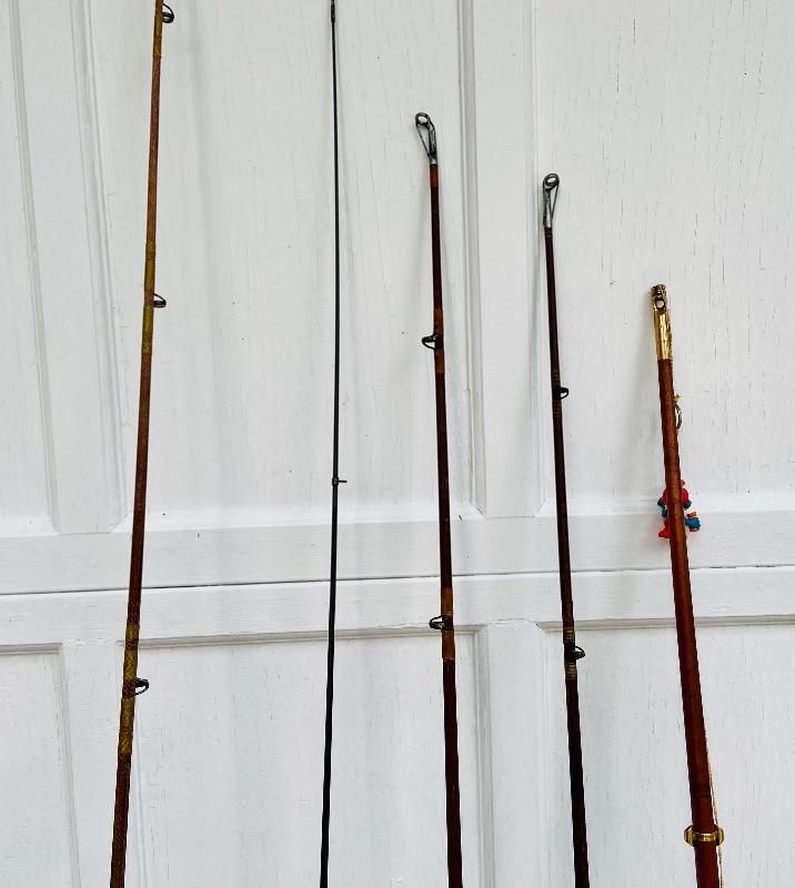 5 Vintage fishing rods, please see pictures for sizing. MHW Each lot is unique and you will need to see all pictures. Pictures have been taken from all side to see condition and markings. What you see in the pictures is the actual content of the lot and the pictures are the best representation of the bottles. All bottles are sold-is according to the pictures. For further information please google the makers marks for age.