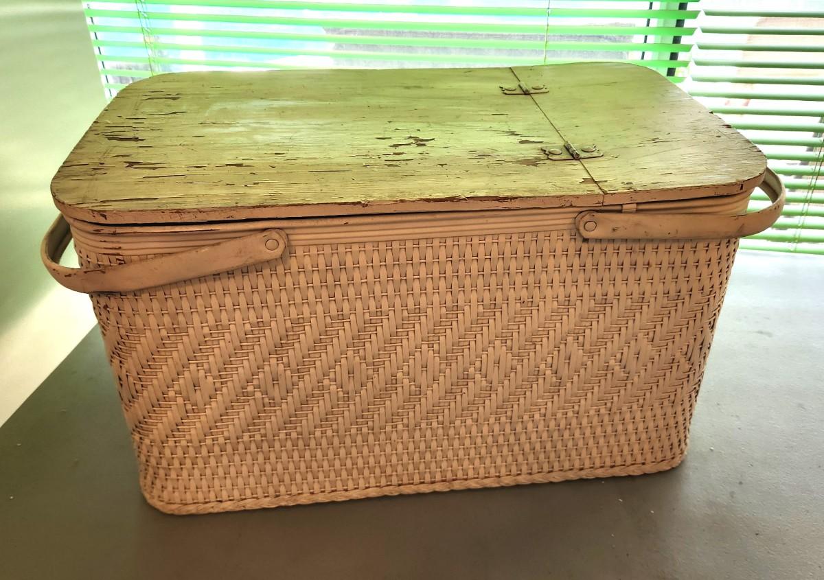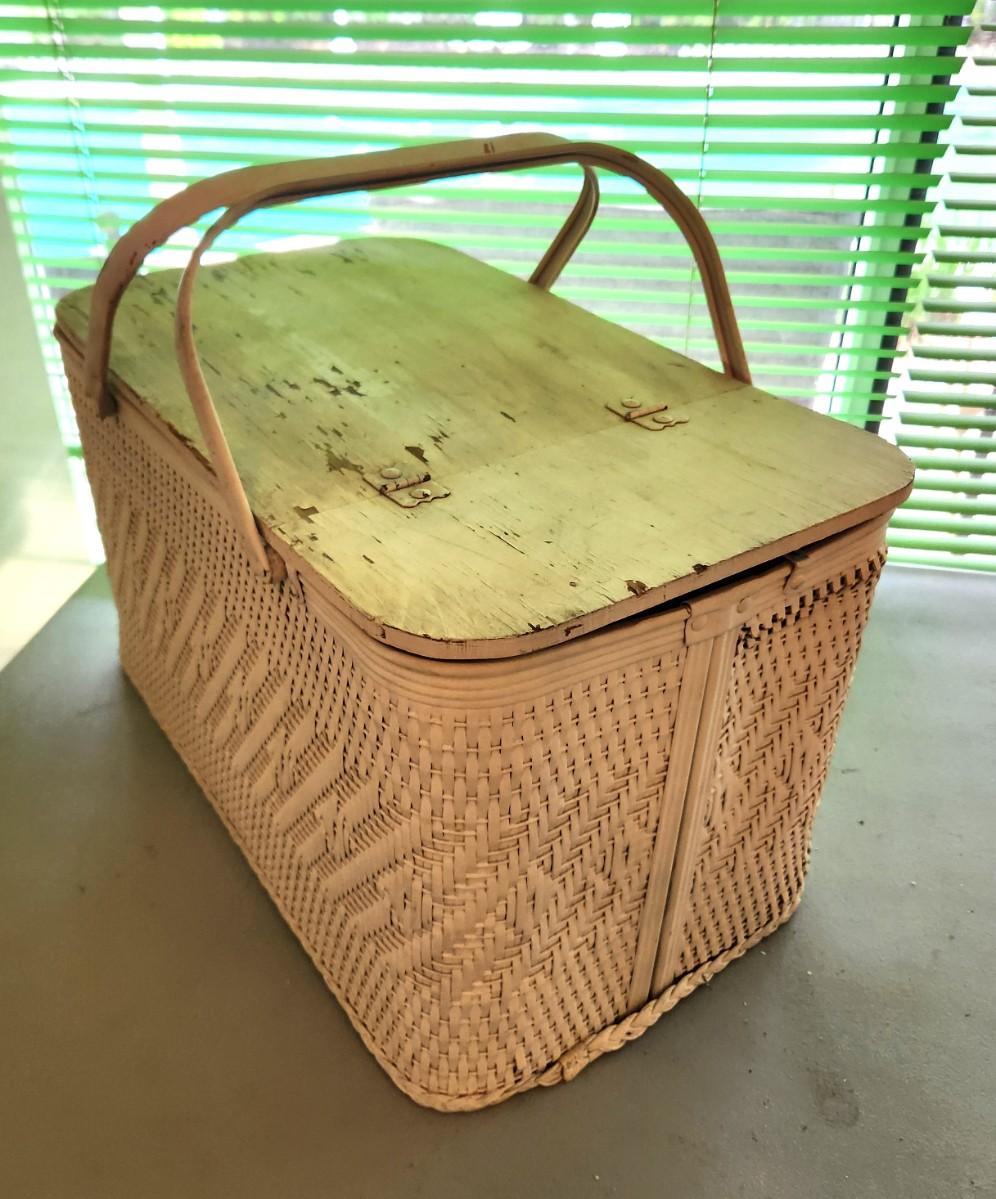 Vintage traditional-look picnic basket with handles - 20" x 12" x 11" - vintage condition.