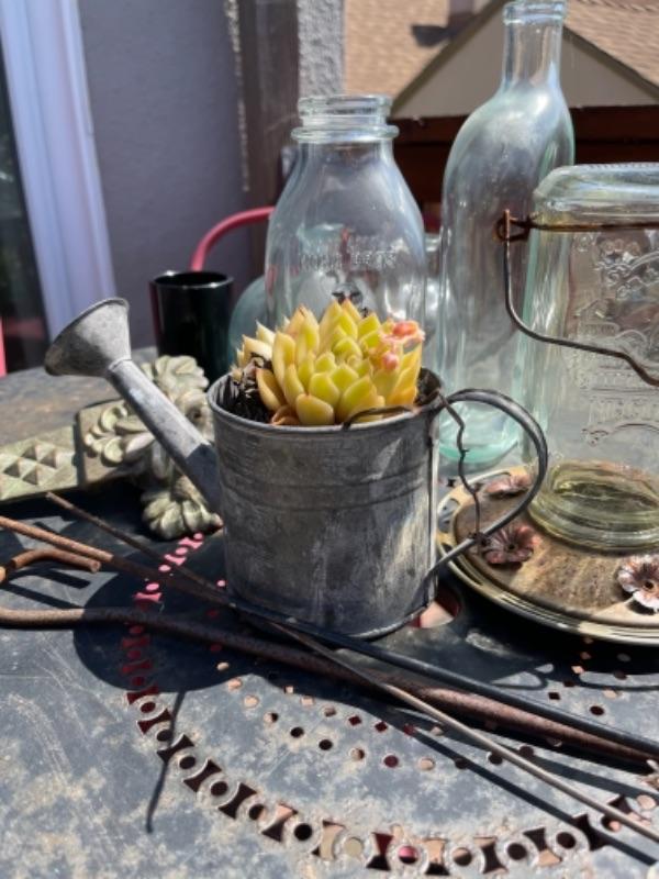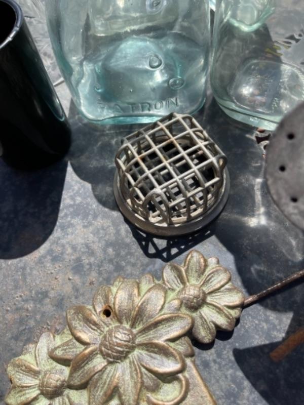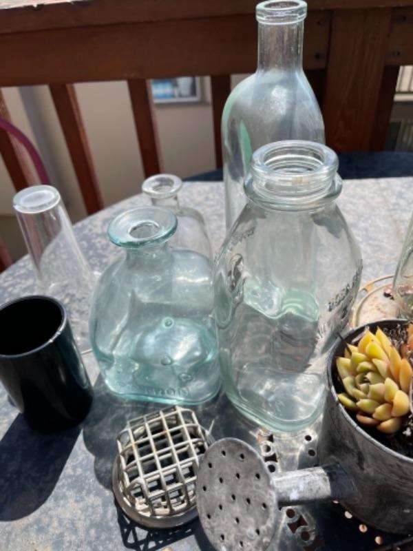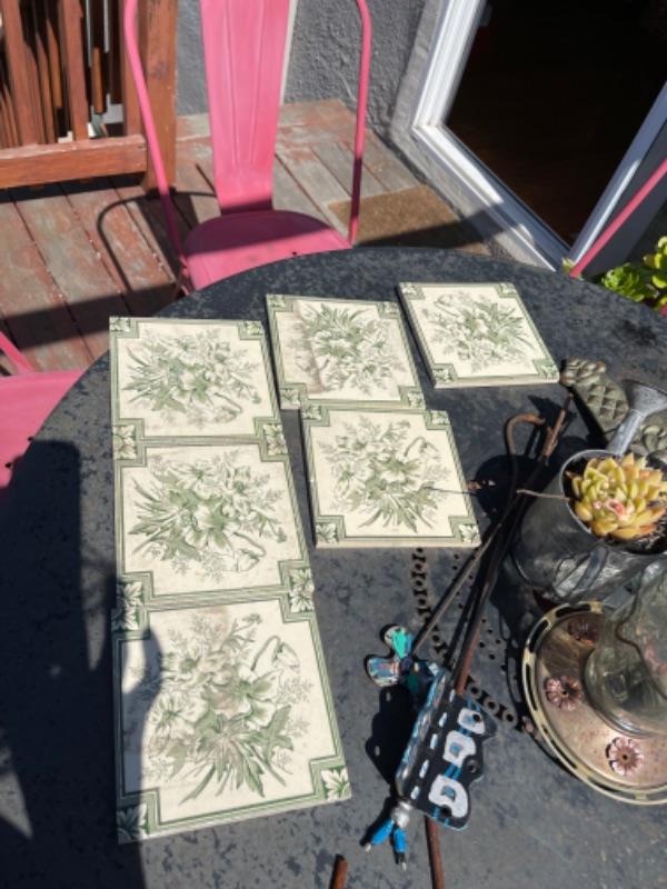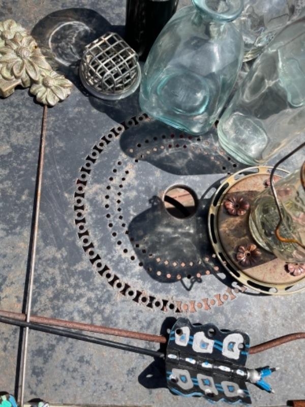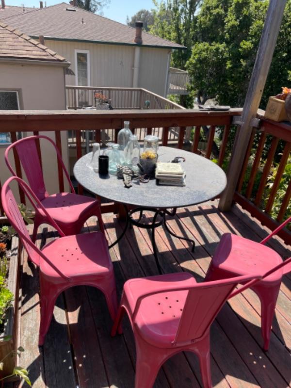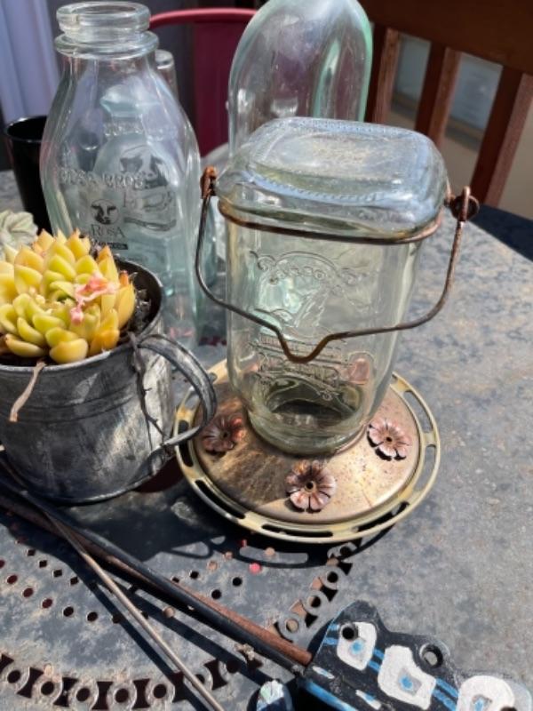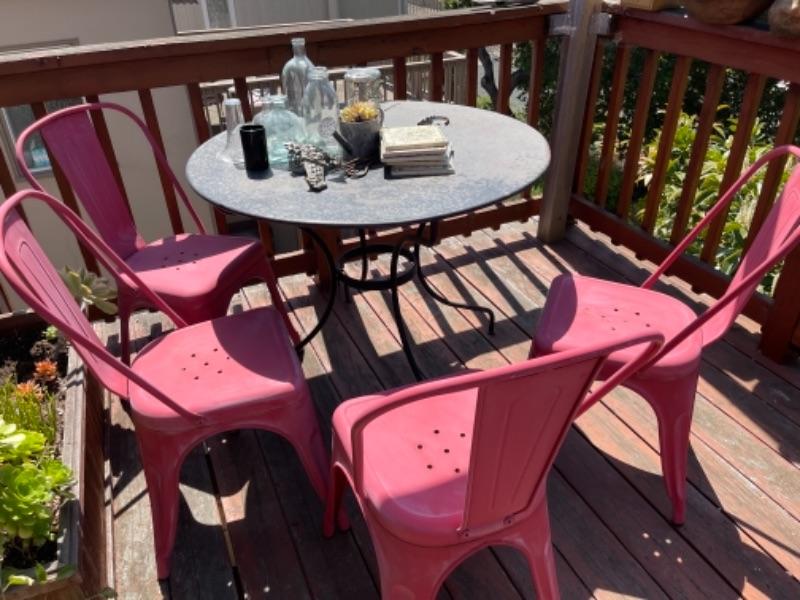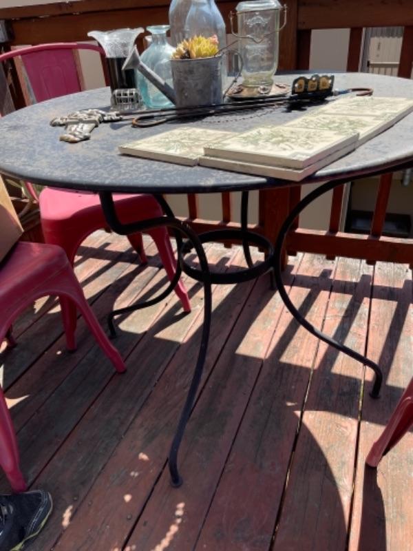 Lot 189G. Patio table with 4 chairs, 6 tiles 6”x6”, wall décor, hummingbird feeder--$125