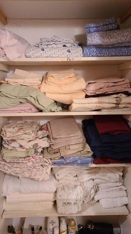 Closet linen lot Pictures are the best representation of the items listed and items are untested unless indicated in description. Thank you for looking and have fun bidding!