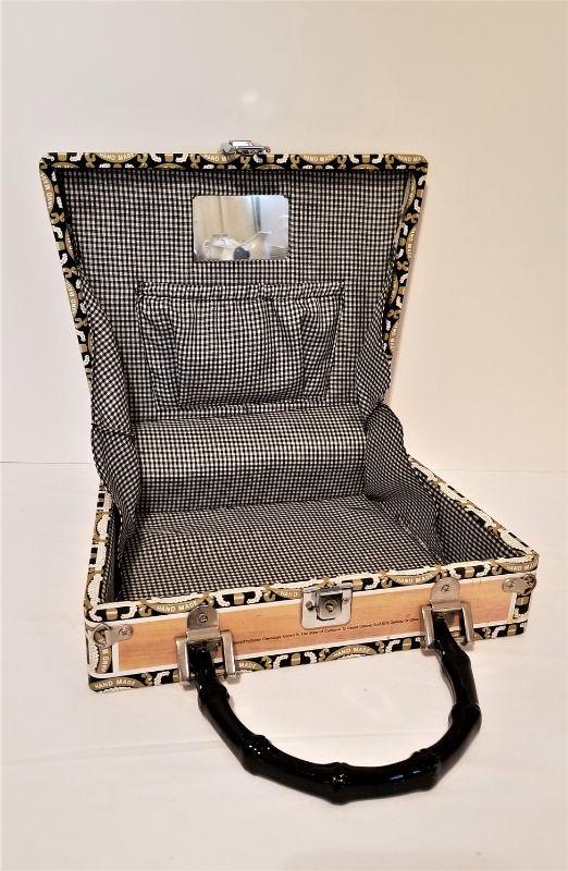 Fun 1990's cigar box purse...remember these? Excellent condition, very cute interior. Measures 9.5" wide, 7.5" tall, not counting the handle. Nice condition. Only gently used.