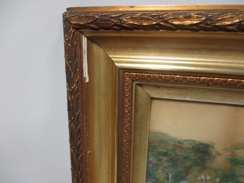 Please see pictures for condition frame does have some damage and picture may need cleaning - foxing - Size approx 17 x 21