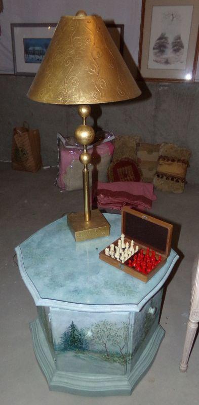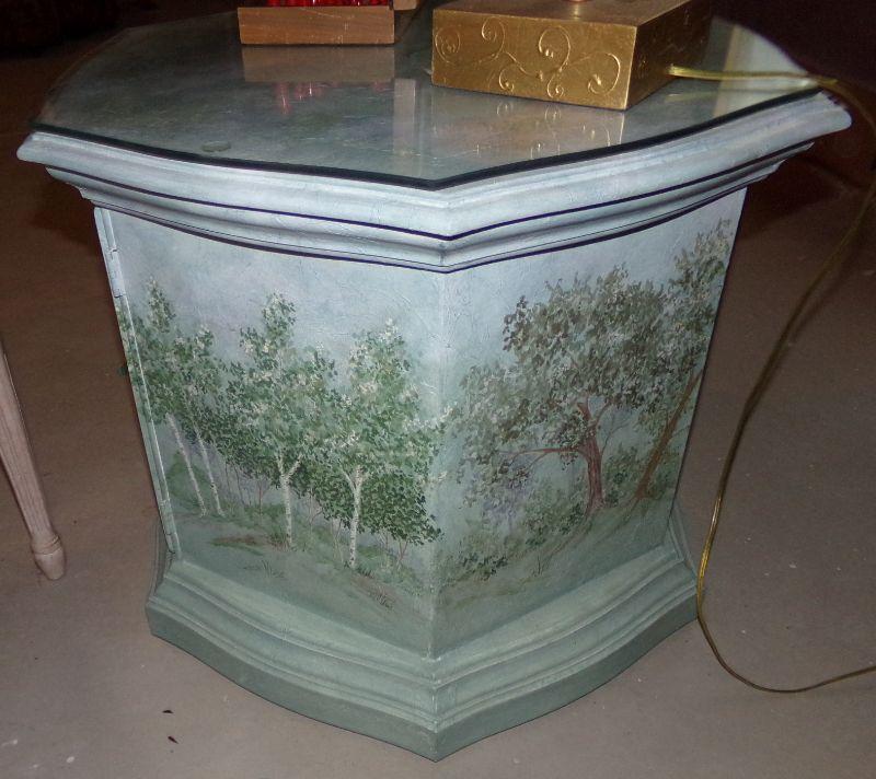 ARTISTICALLY PAINTED END TABLE WITH CABINET VG CONDITION 27WX21H