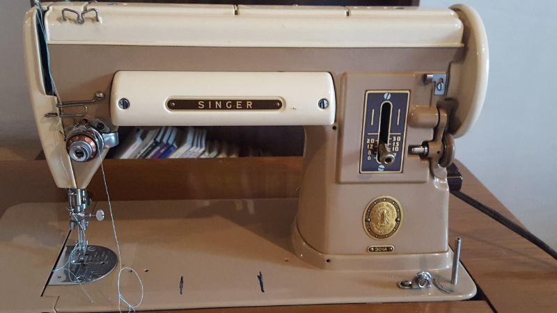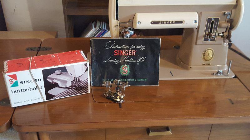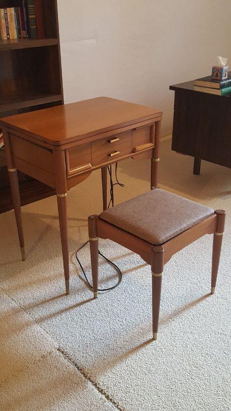 LOT 19: Sewing Machine with Cabinet and Stool