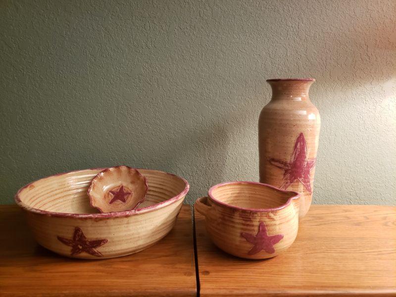 (4 piece) Redd Star Pottery - Watson - Tripp City, Ohio. Sizes (in order of the individual pictures) 5"x12" ... 7.5"x4" ... 5.25"x1.5" ... 12.75"x3.5"