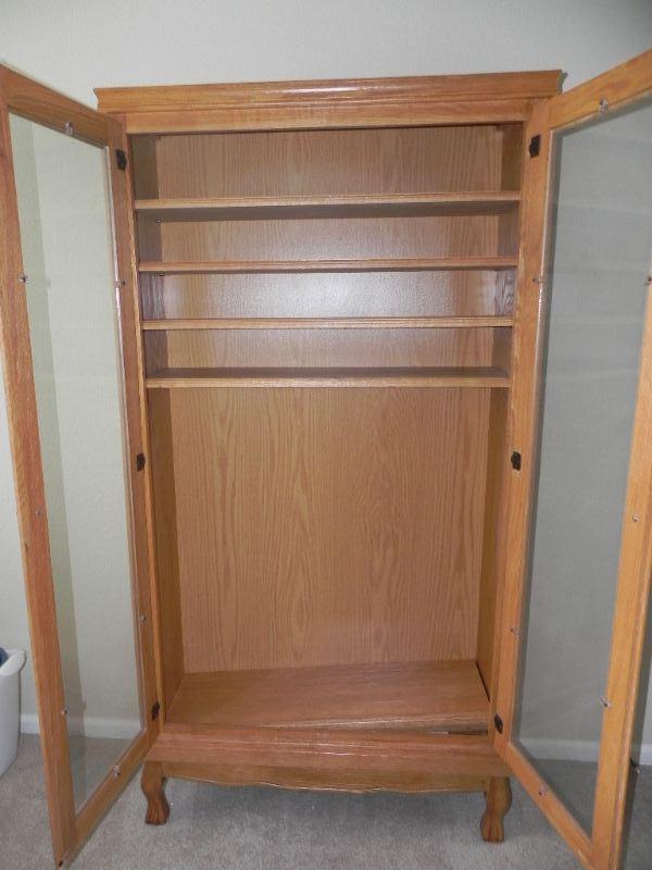 MEASURES 50"X16"X78", ADJUSTABLE SHELVES, VG CONDITION