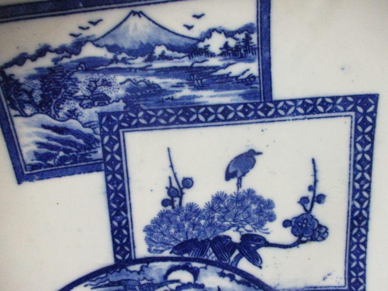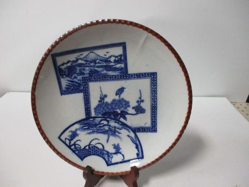 Lot 19 -  Vintage Blue and White Porcelain Plate 3 Panel Scalloped Edge 10" Choice #3