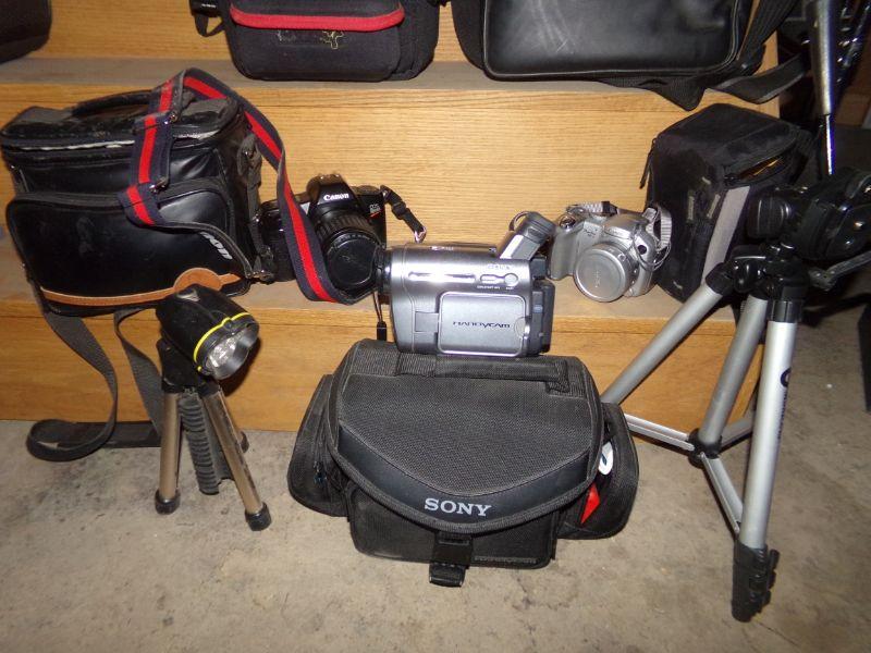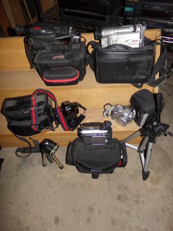 NUMEROUS CAMERA'S, CAMCORDERS, CAMERA TRIPOD, BAGS & ACC