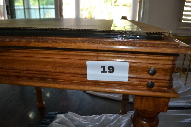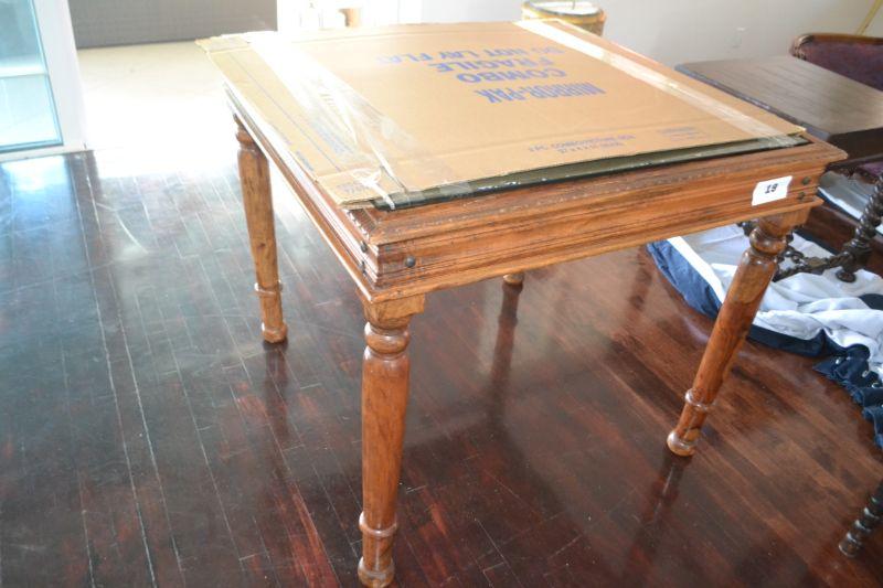 LOT 19 WOOD TABLE WITH GLASS TOP