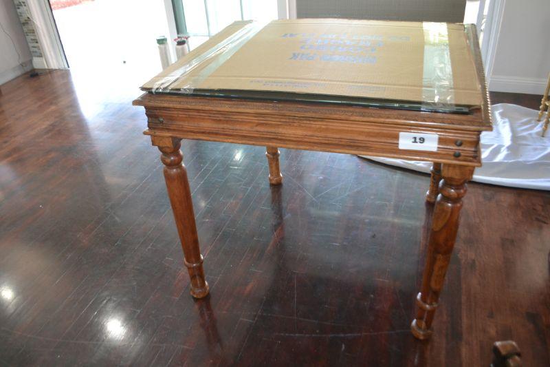 LOT 19 WOOD TABLE WITH GLASS TOP 42" WIDE