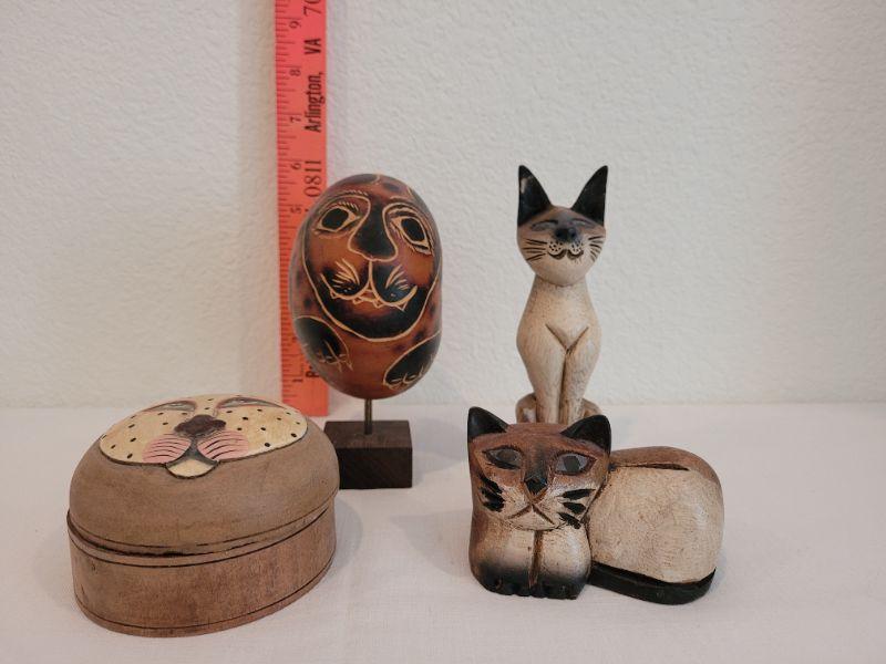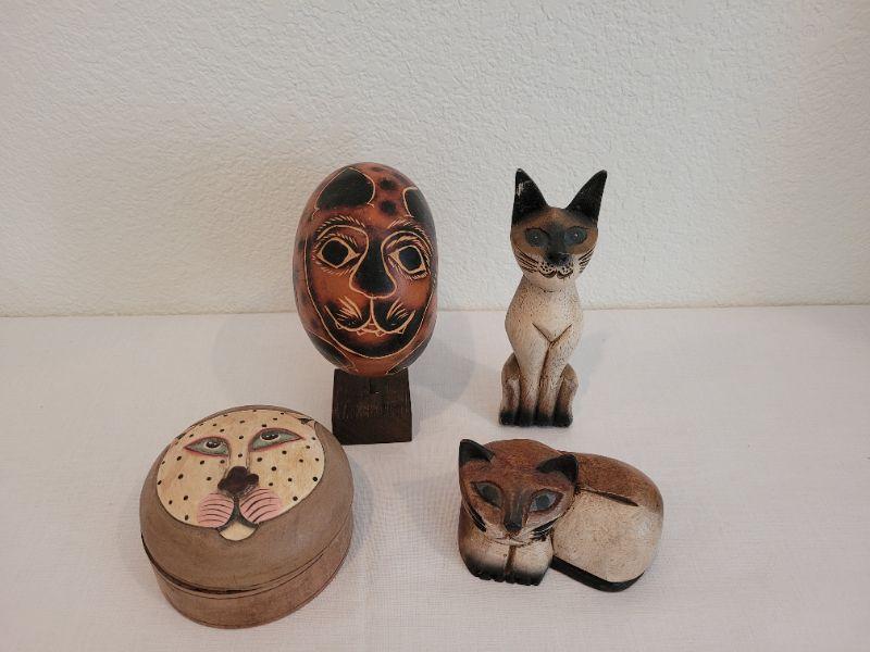 Lot 19: Vintage International Wood/Gourd Cat Lot
