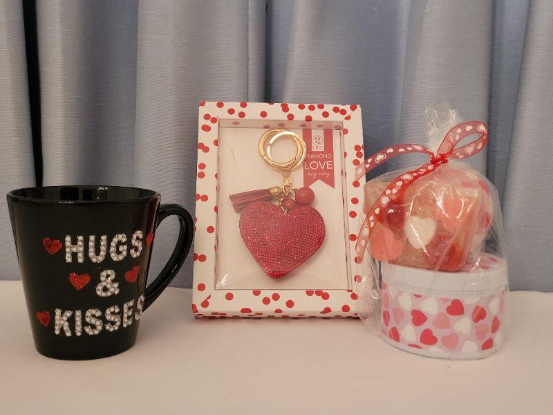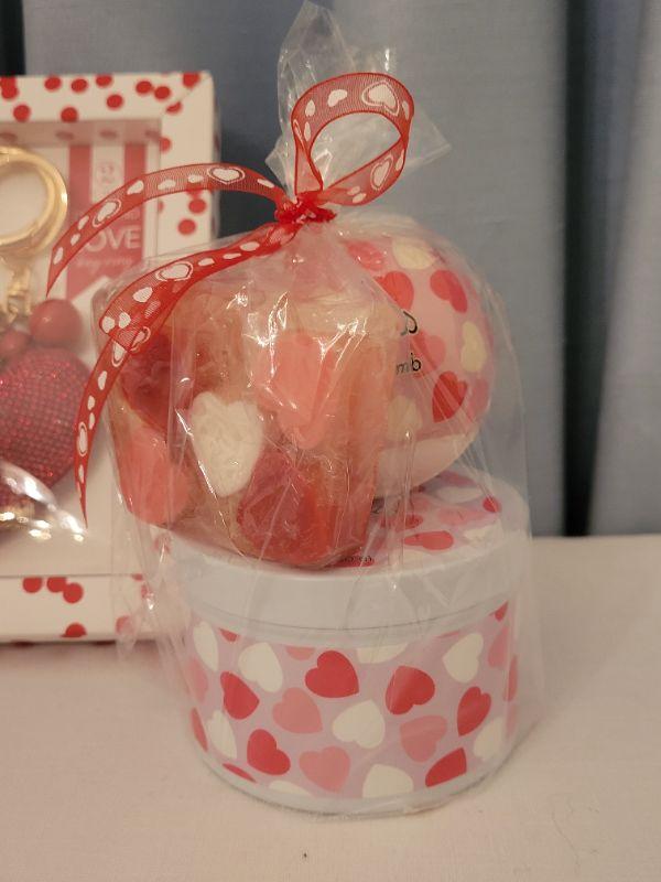 Lot 19: NEW Valentine's Coffee Cup, Keychain and Soap, Bath Ball and Candle
