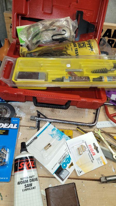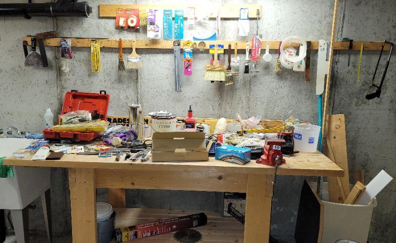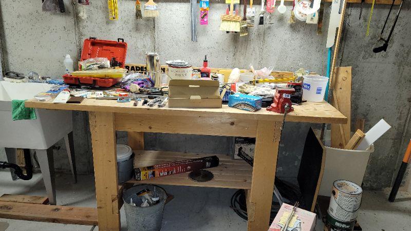 Lot 19: Workbench, vise and everything else on , under and above the worktable