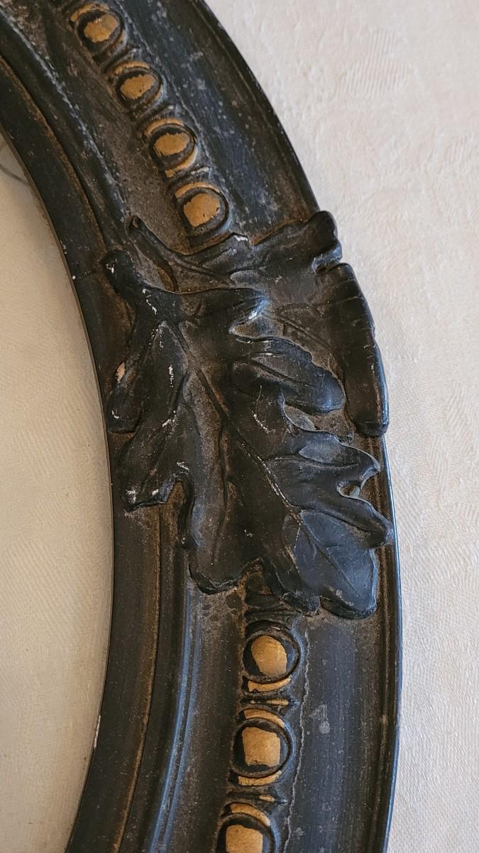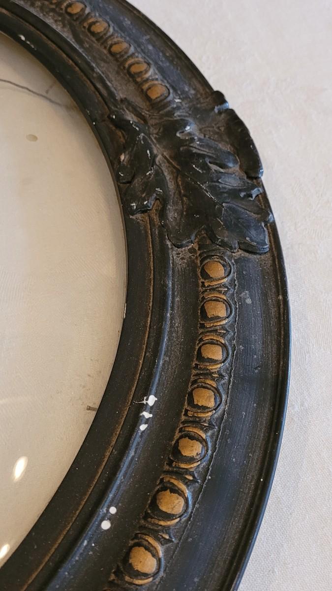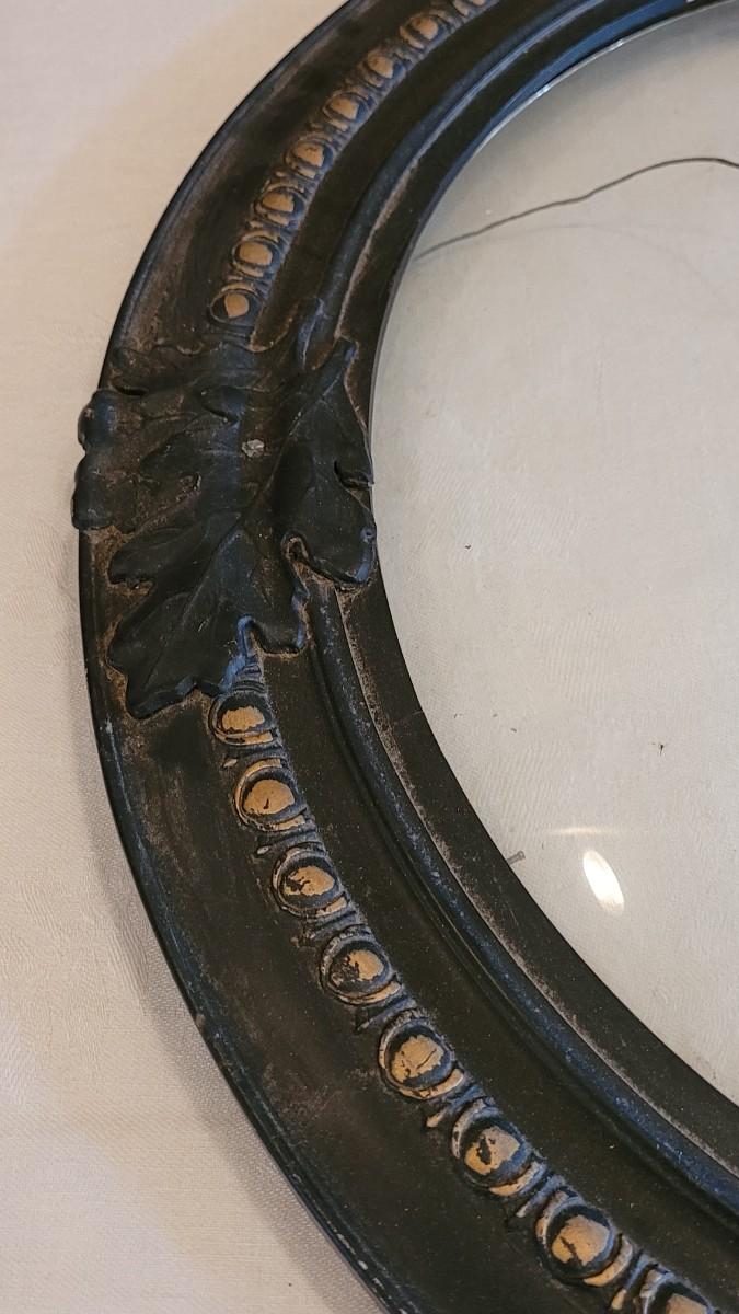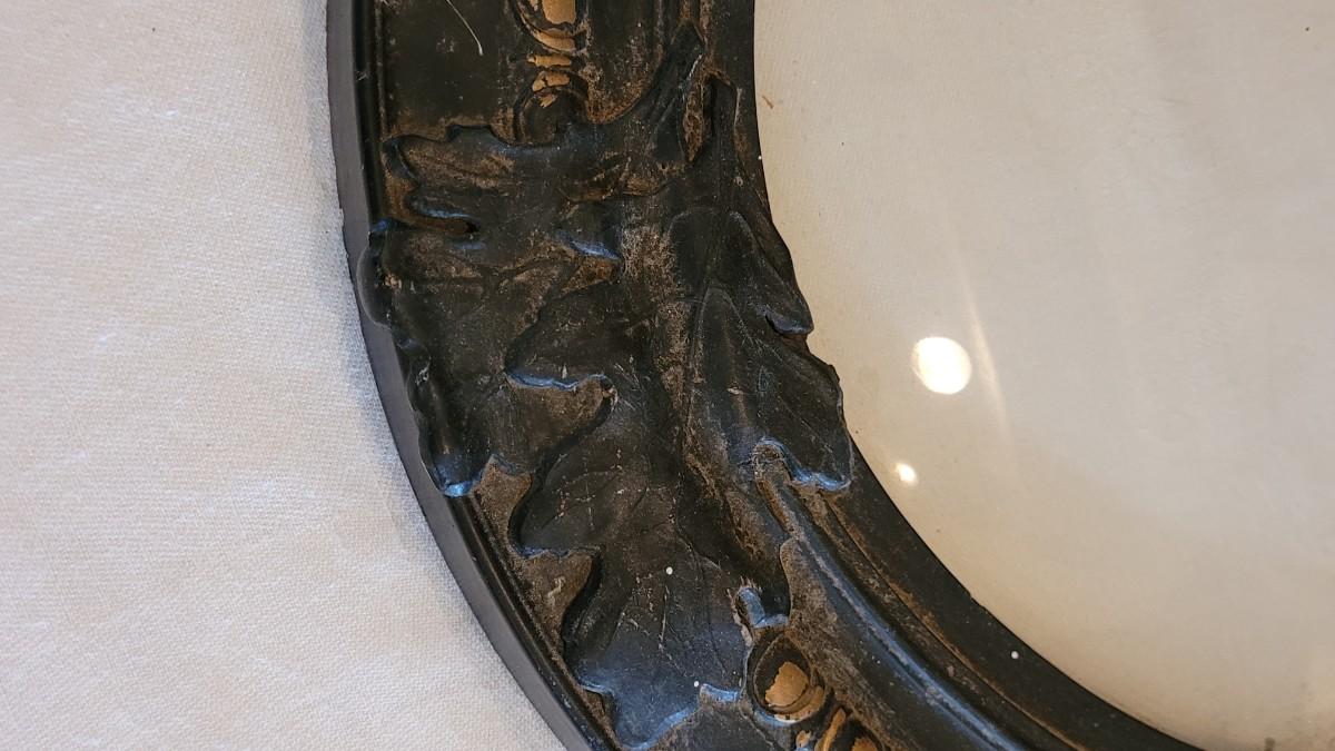 Lot 19: Antique Bubble Glass Wood Picture Frame with Oak Leaf Motif