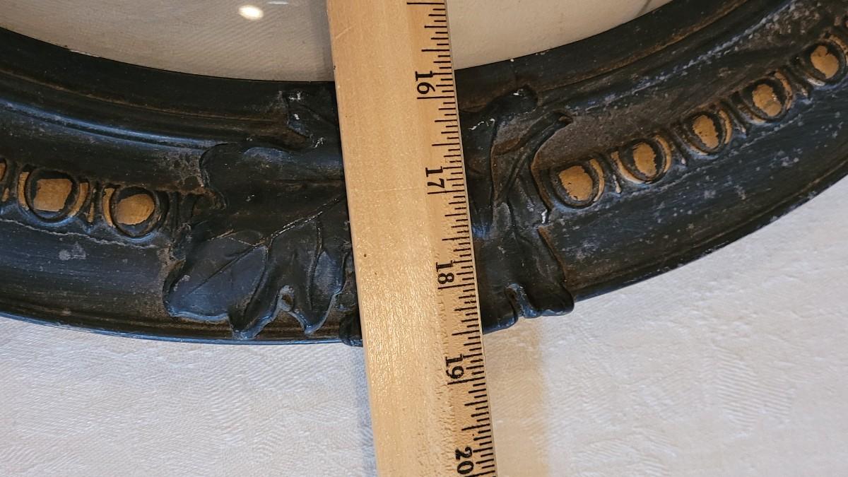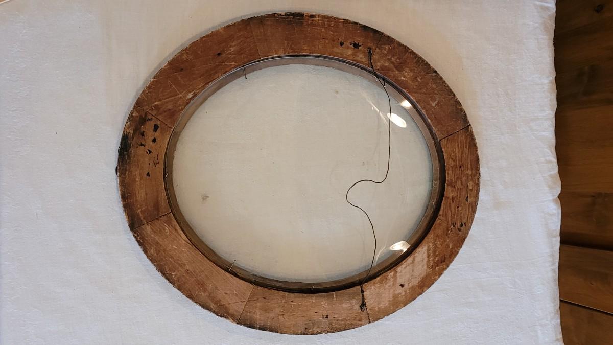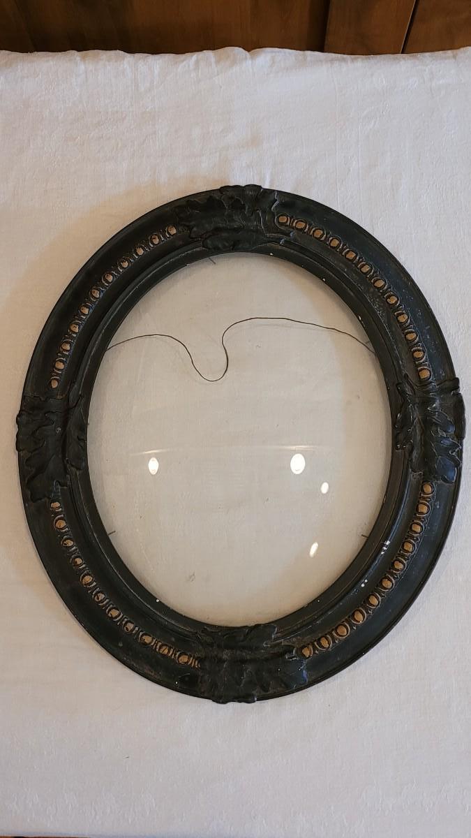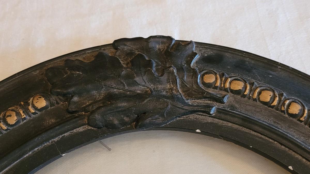 Lot 19: Antique Bubble Glass Wood Picture Frame with Oak Leaf Motif
