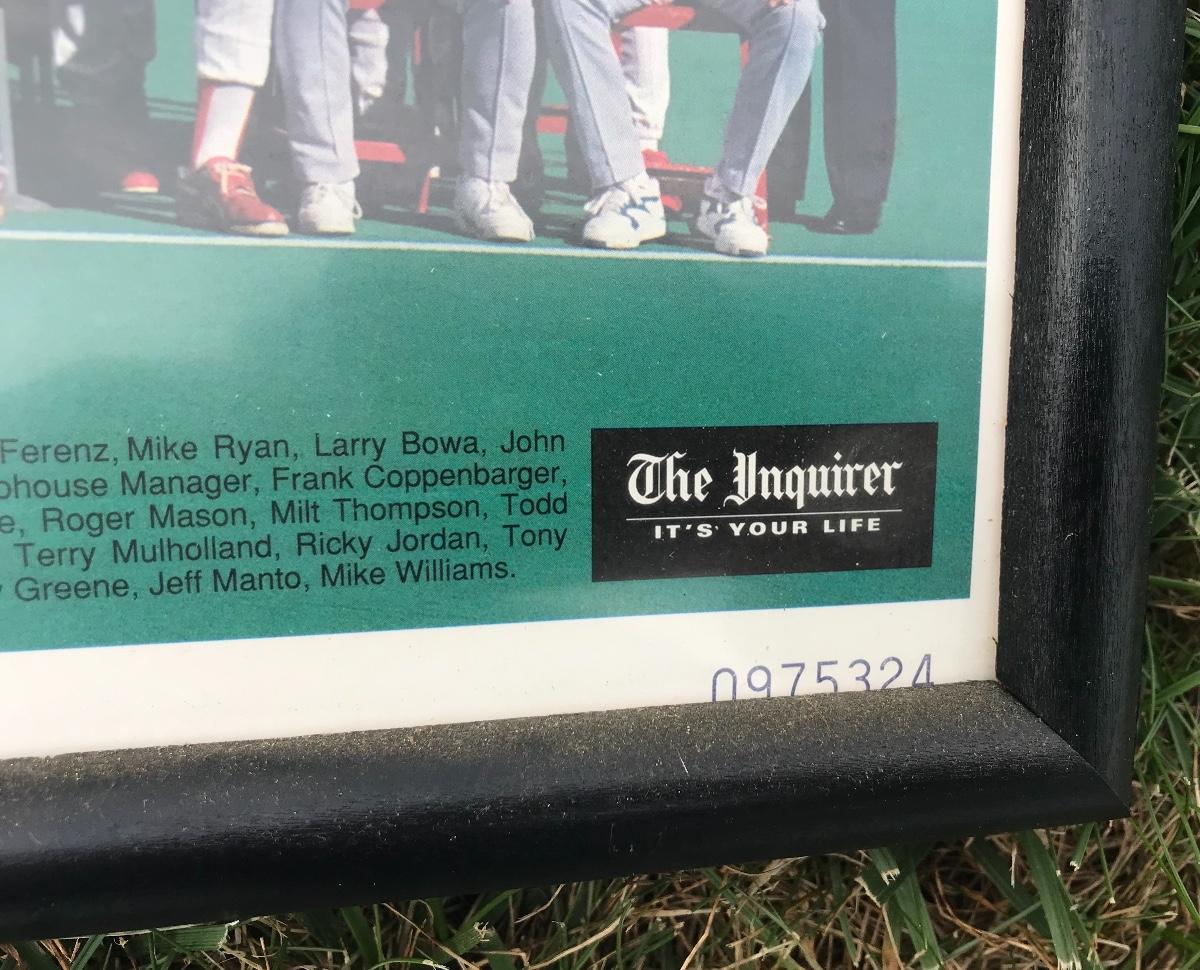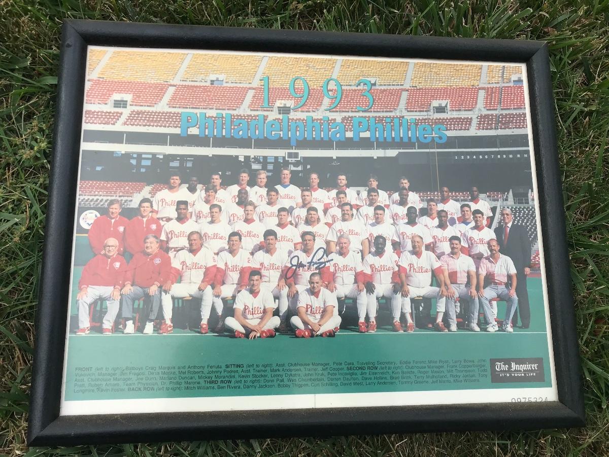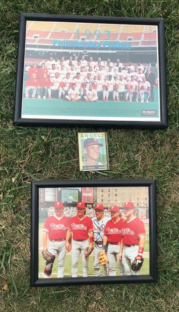 Three autographs from former Phillies manager Jim Fregosi - two on framed photos and one on a baseball card from his playing days. Photos measure 14 x 11 and 11 x 9. The pictures show condition, measurements if taken, and what is included in the lot. Due to the large amount that we photograph and the time frame, we are not always able to take measurements. All items unless noted, are pre-owned and have been used. If you purchased furniture, you must bring help. We do not allow one person to carry large furniture out on their own. Bring help, tools and a truck for the safety of our client’s homes, and your personal safety. Company policy. Thank you.