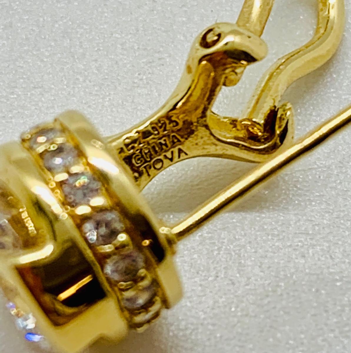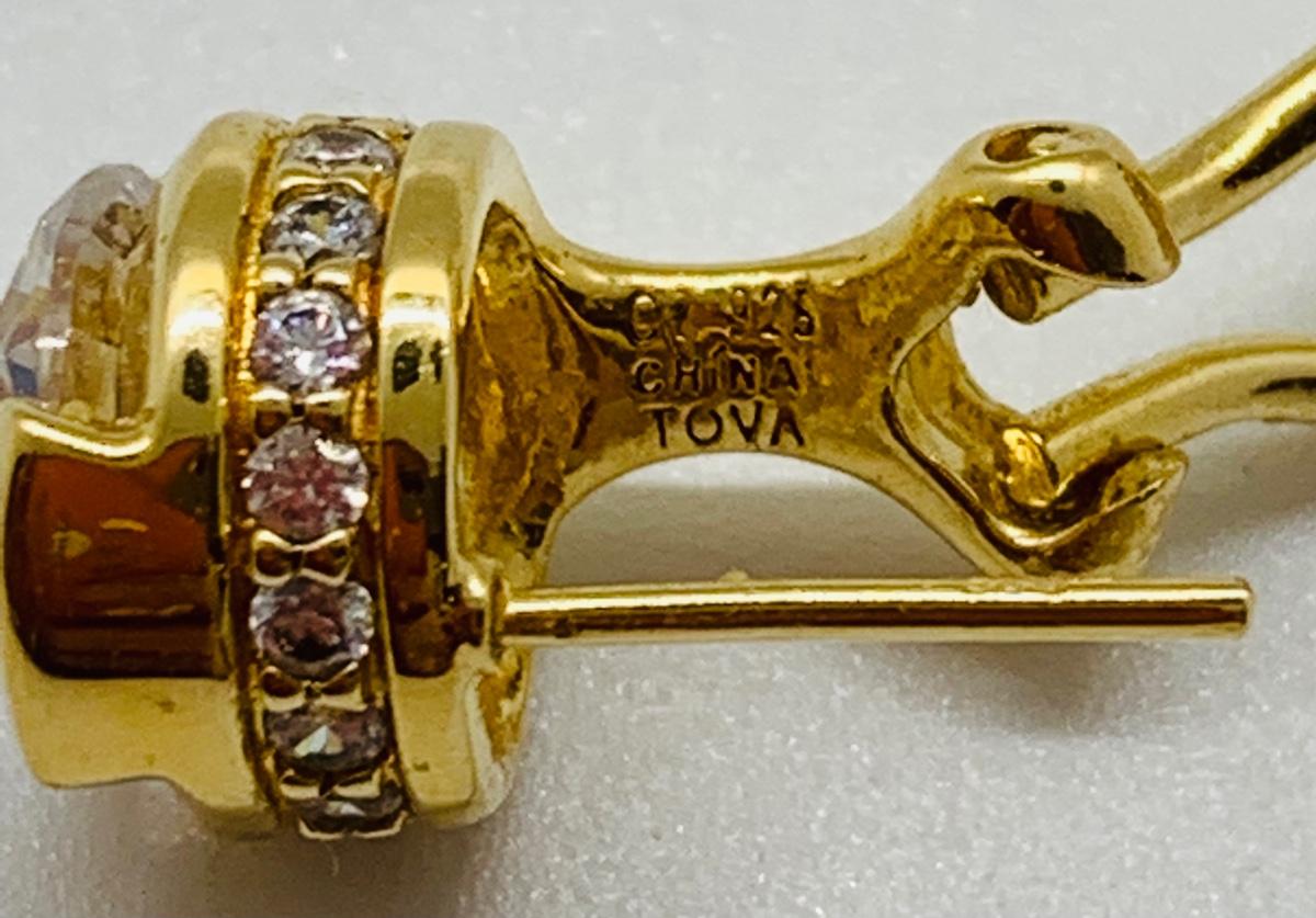Beautiful pair of silver and gold vermeil Tova CZ earrings set in 925: Tova Borgnine, widow of the actor Ernest Borgnine, designed for QVC.