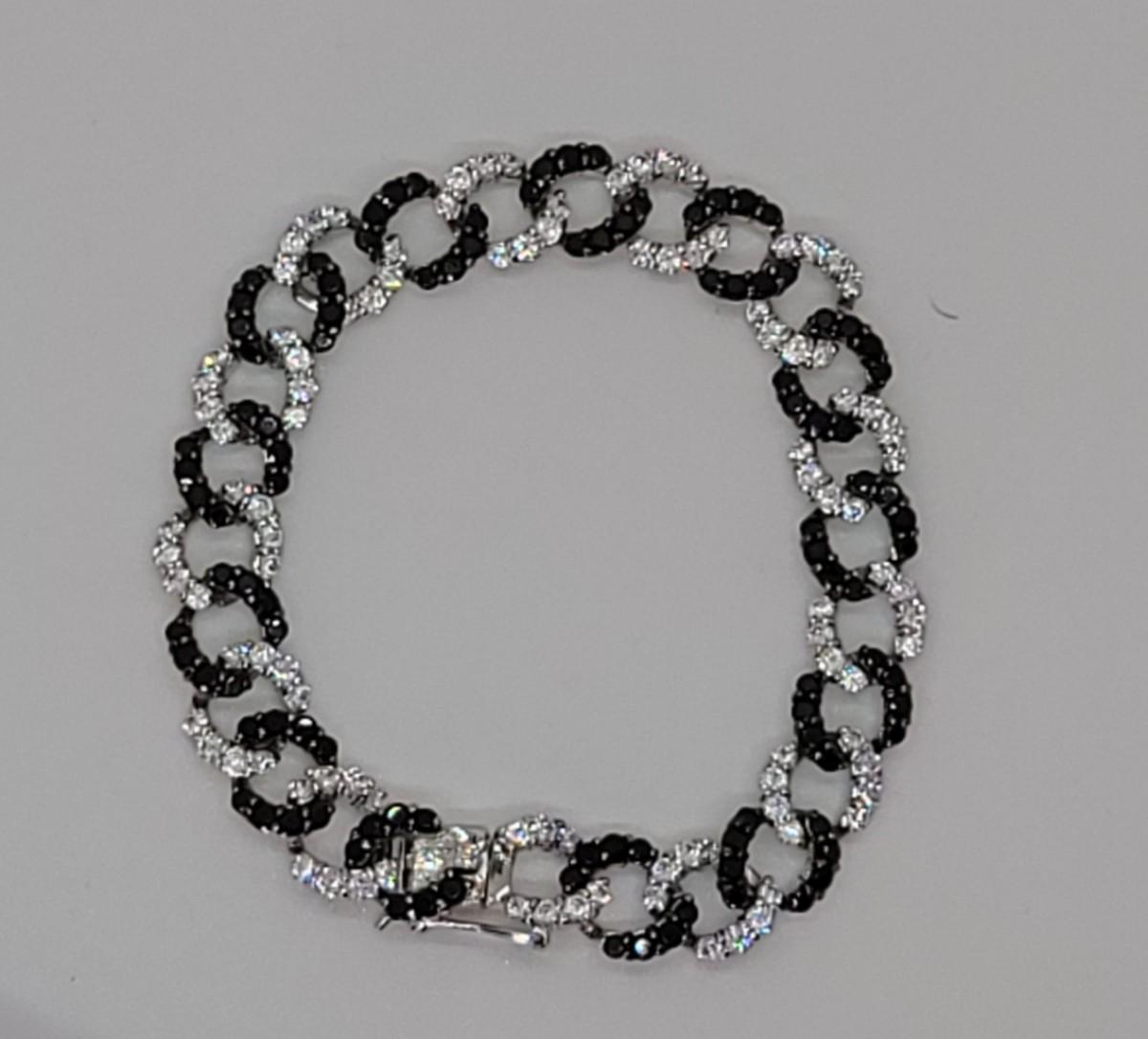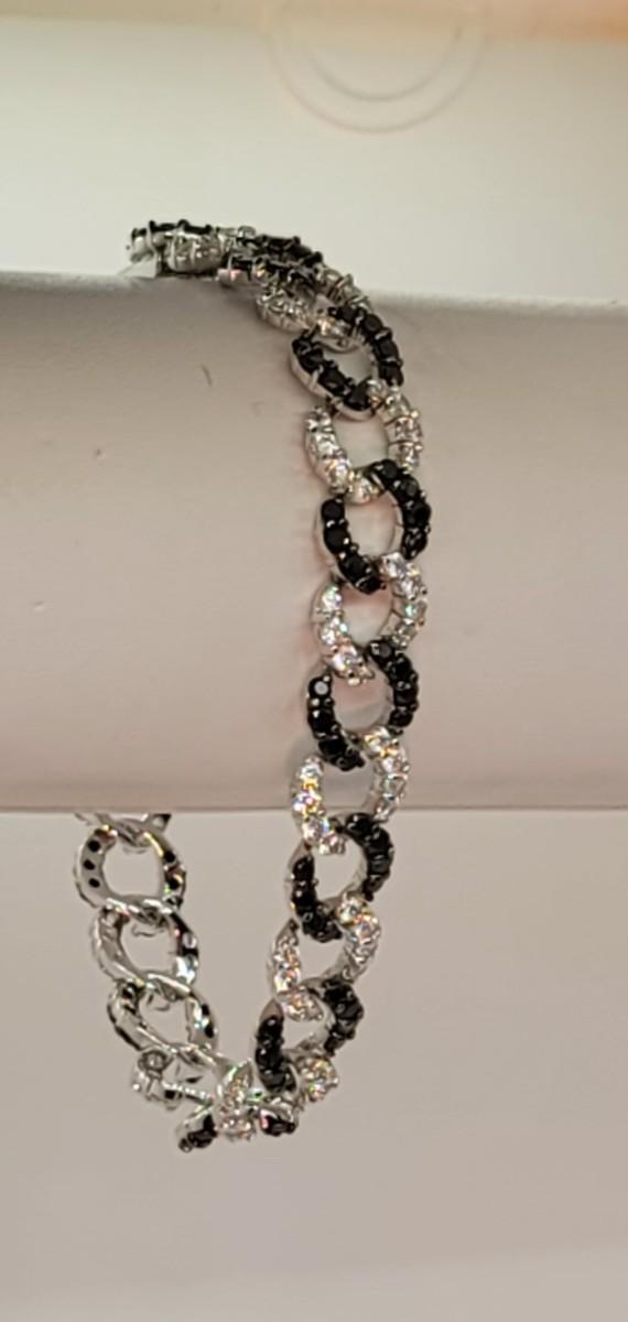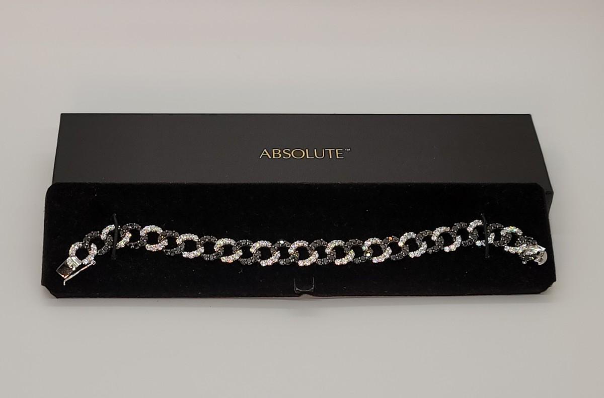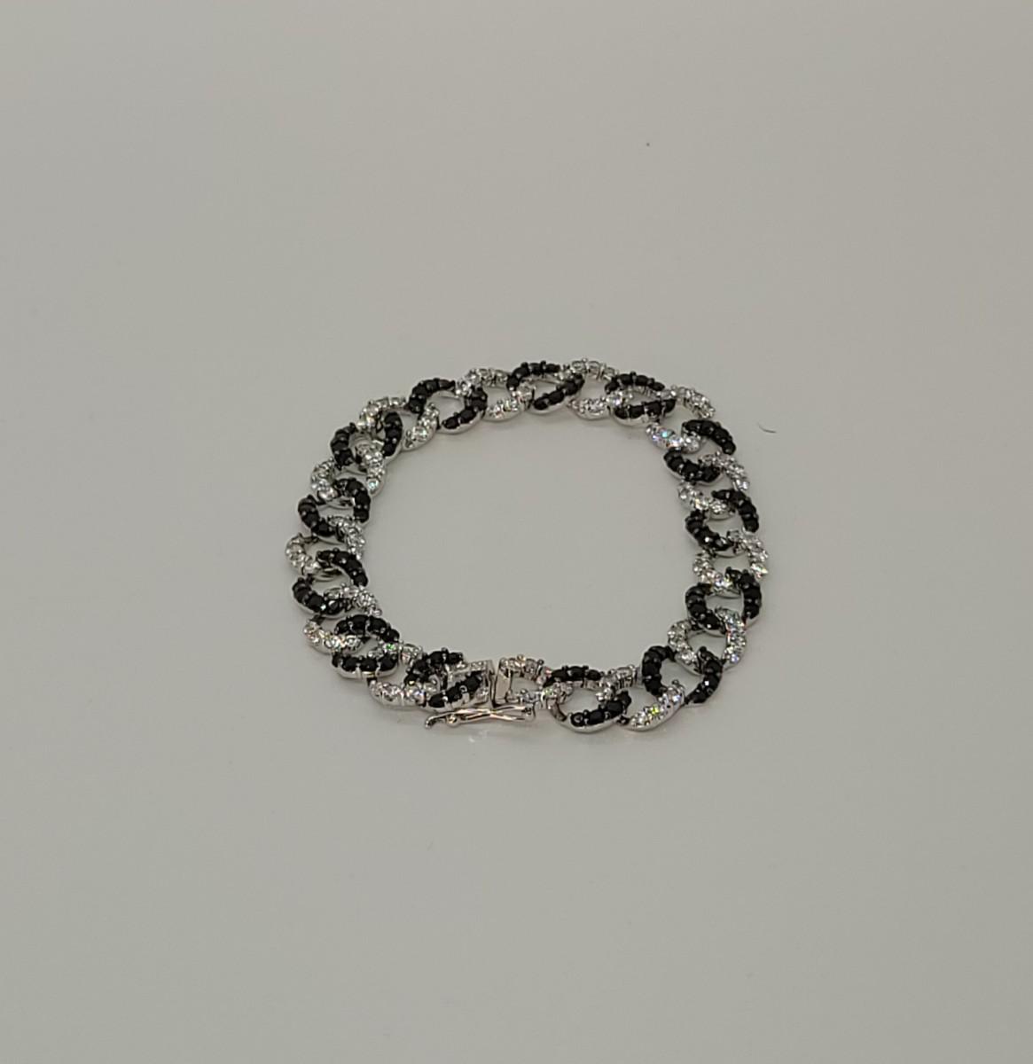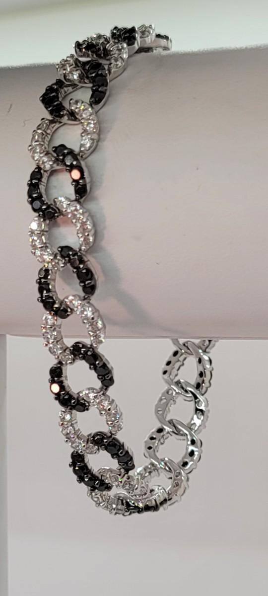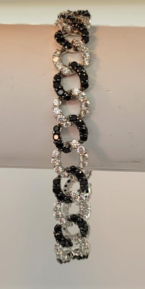 Lot 19: Absolute, 925 Cz Thai ADI Sterling Bracelet (Two tone/Black & Clear Simulated Diamonds, Links)
