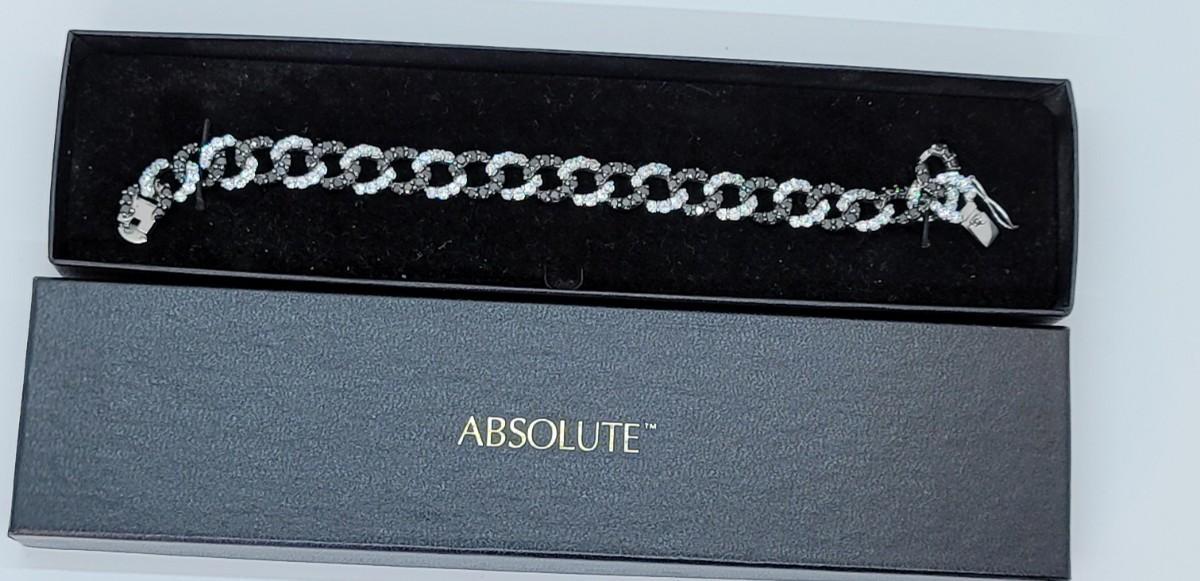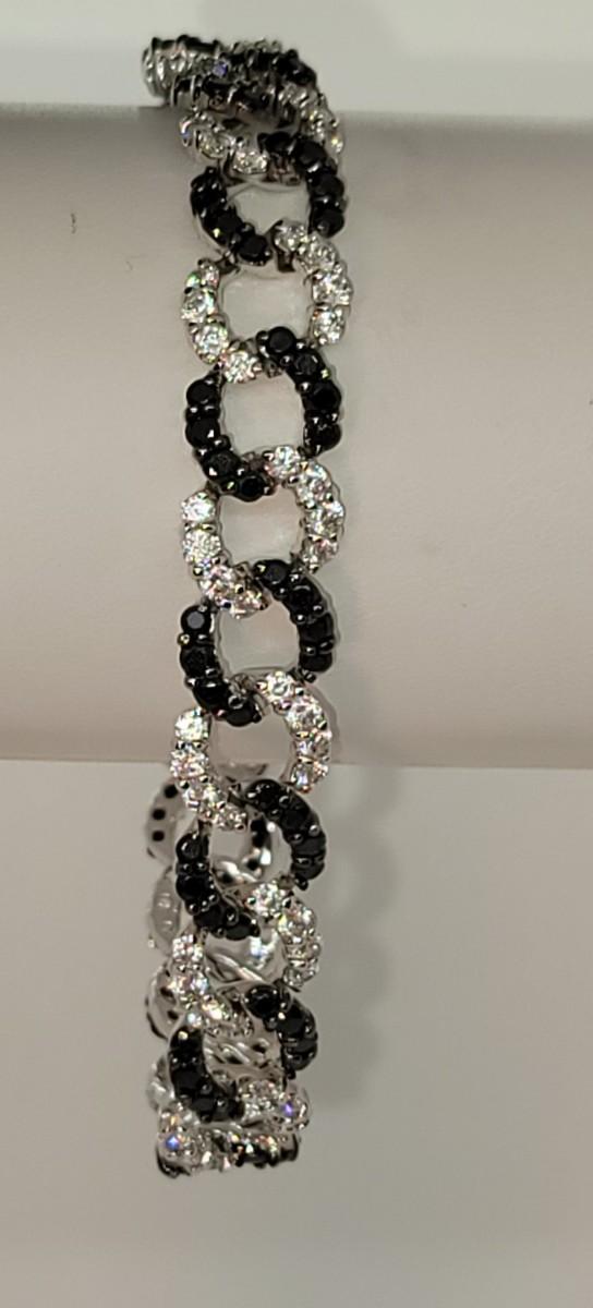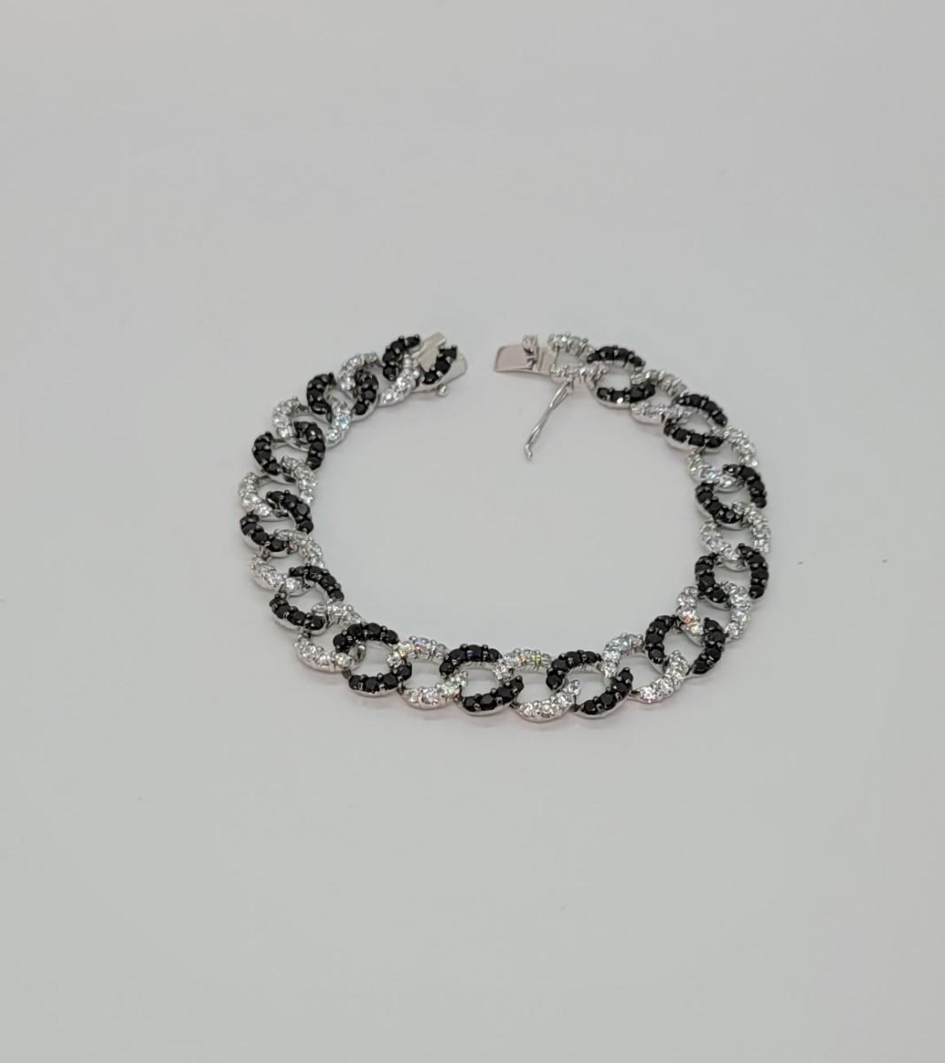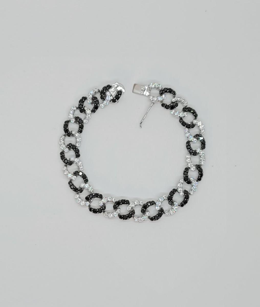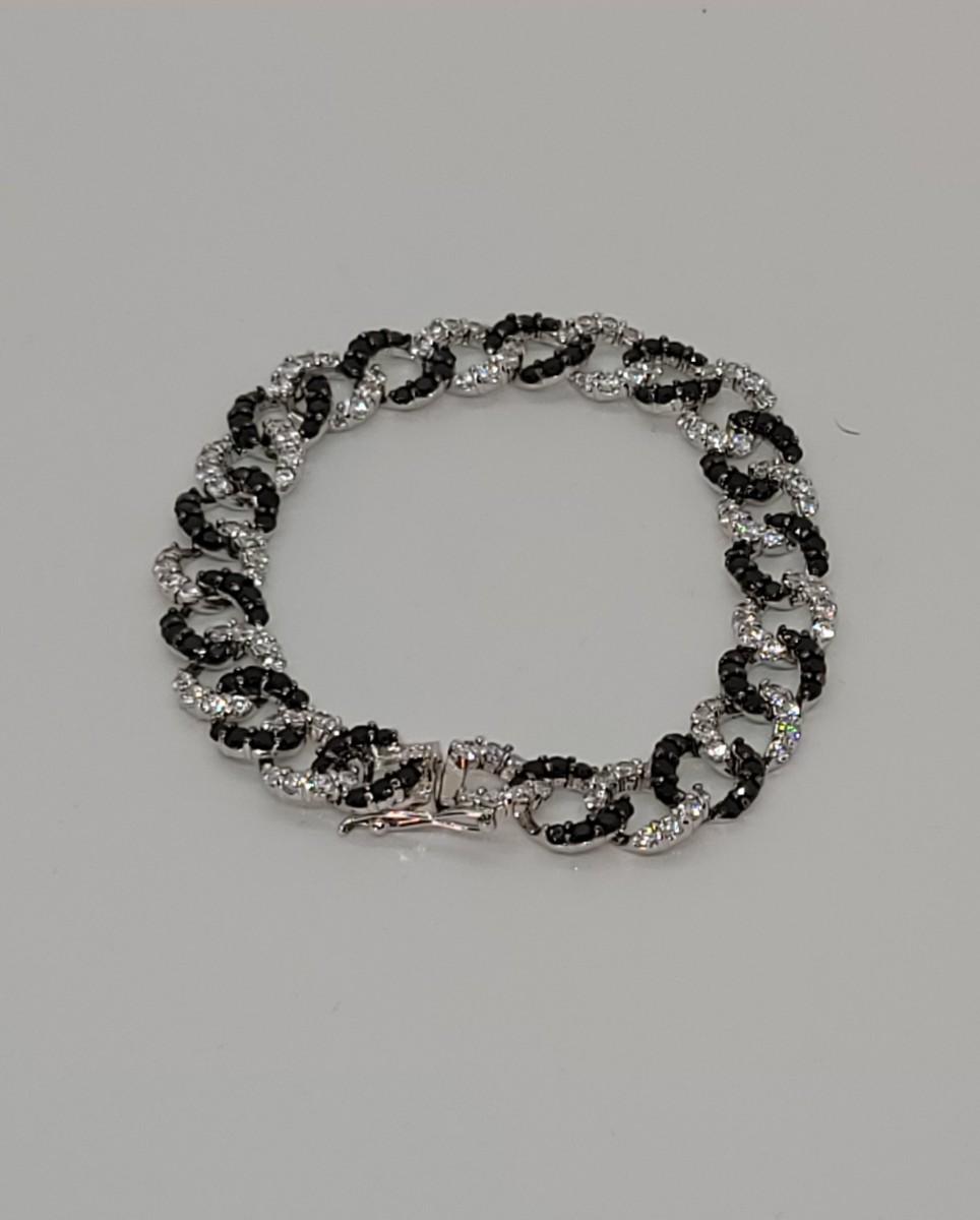 Lot 19: Absolute, 925 Cz Thai ADI Sterling Bracelet (Two tone/Black & Clear Simulated Diamonds, Links)