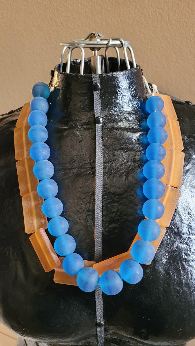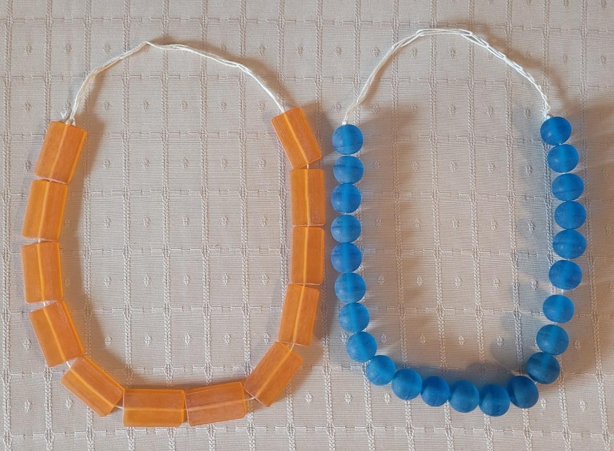 Lot 19: Vintage African Recycled Glass Orange & Blue Beads