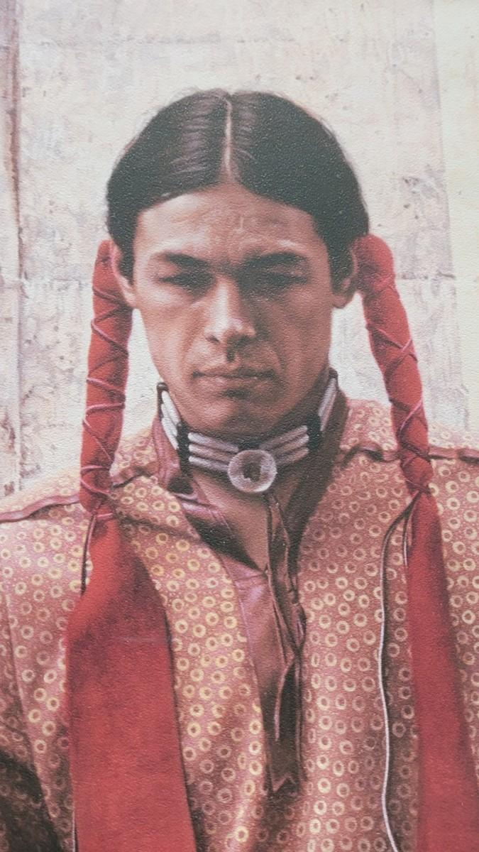 Excerpt: A Young Oglala Sioux, depicts Rick Williams, the first Indian youth Bama painted. He effectively captured Williams’s personal attitude with a natural pose. The subject’s casual, yet reflective stance conveys not only his youthful vitality, but also his wariness.