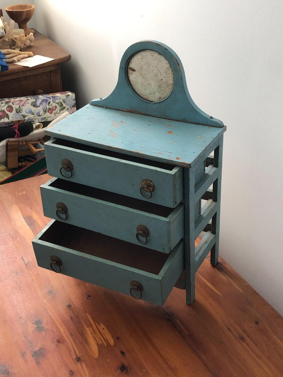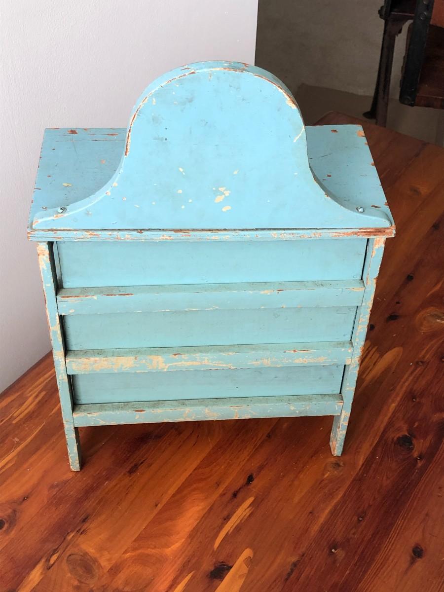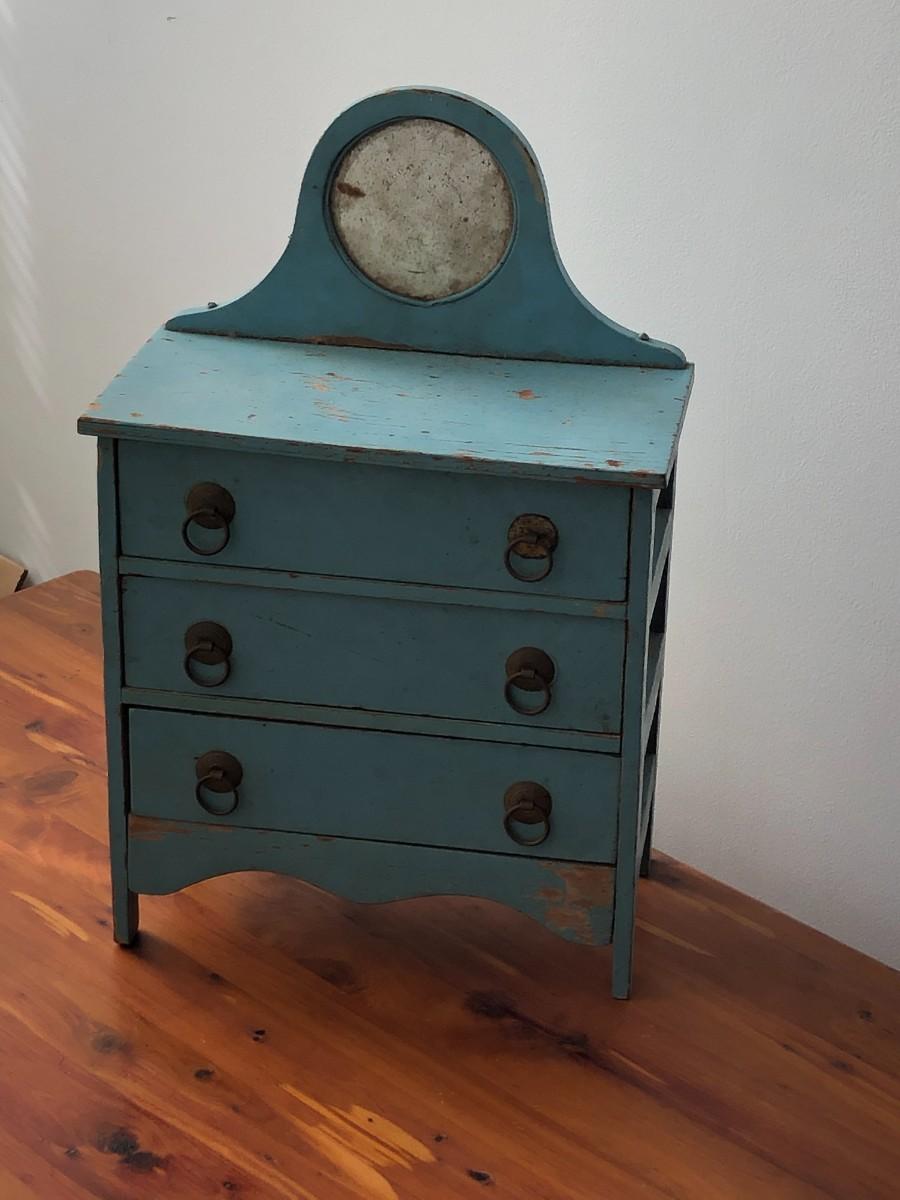 This belonged to the consignor's mother when she was a child (1930s) and then was passed on to the consignor when she was a child. It is in fantastic shape and measures about 17.25" x 11.25" with a tin mirror. It matches Lot 18.