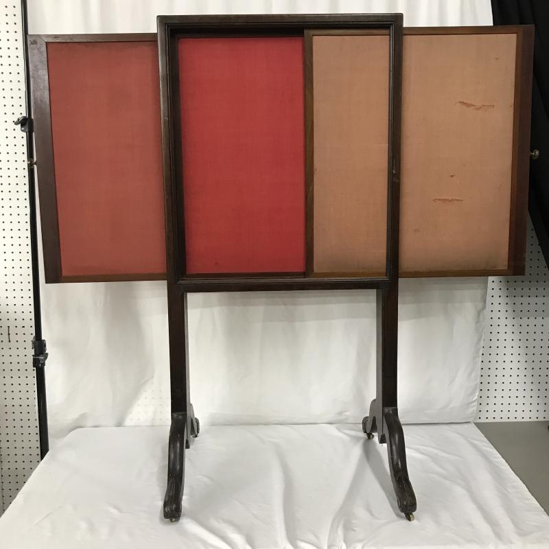 Antique screen with two pull out sides for privacy. Double sided. Made for youth to change clothes behind for privacy. Some small tears in fabric, Otherwise good condition. Measures 25” x 3.5” x 49”h. Local pick up only in Maggie Valley, NC.
