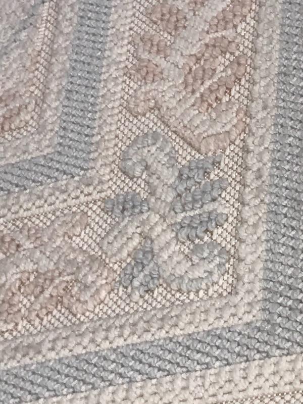 Lot 19: Wool Area Rug 8x6 Cream, Peach, and Pale Blues.