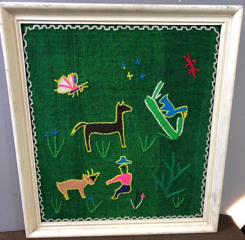 Lot #19 Art Work Crewel nature; squirrel, butterfly