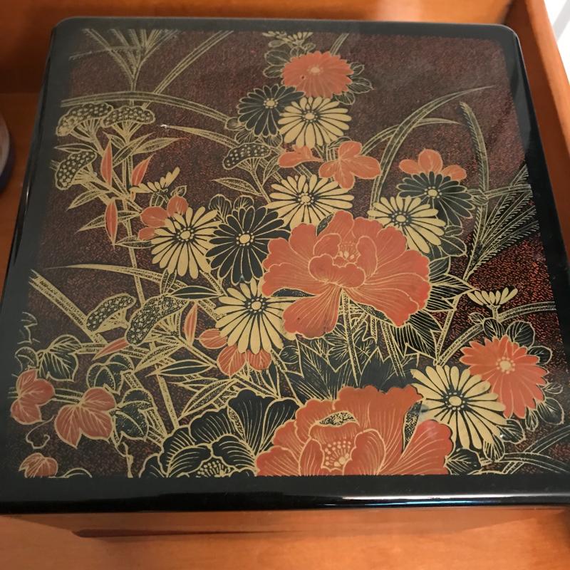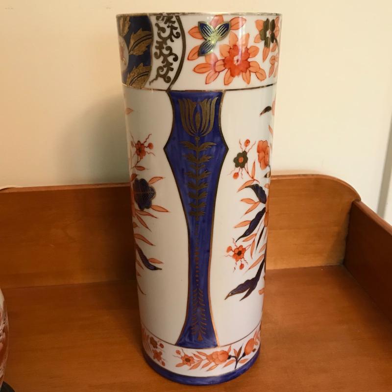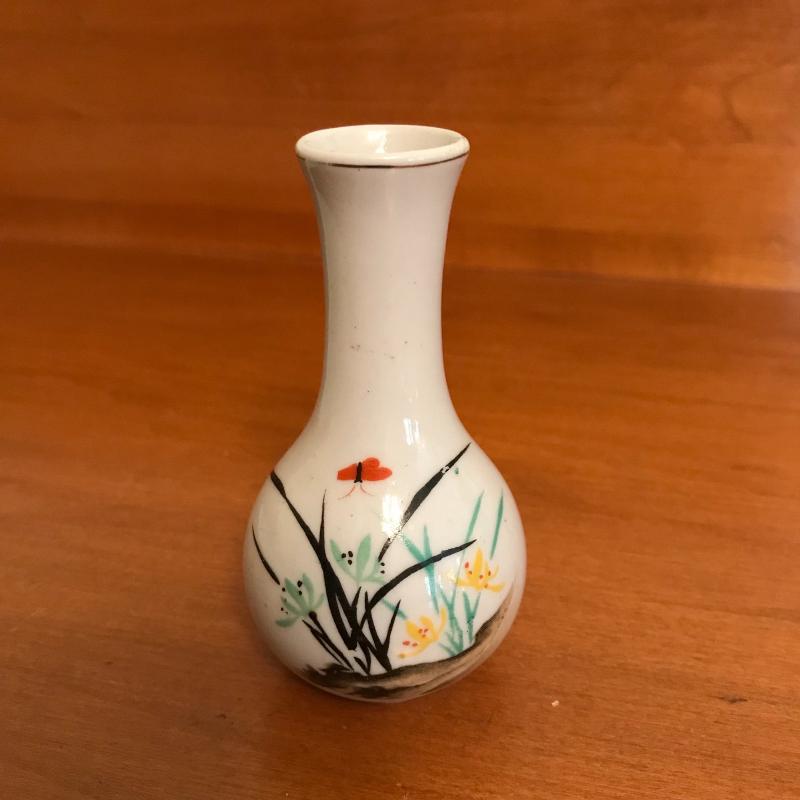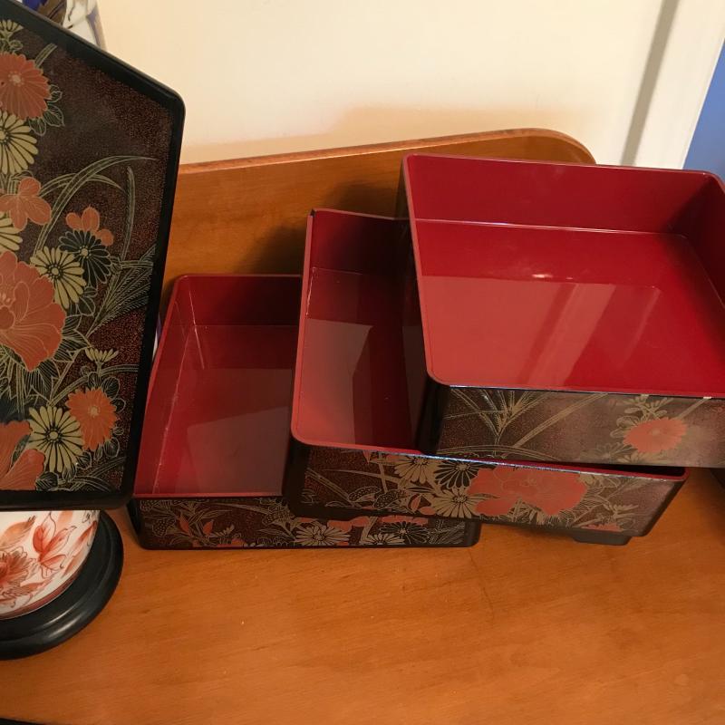 Beautiful lot includes seven pieces, the largest vase is approx. 4.75”d x 12”. Check out the fine details of all in the photos! The stackable organizer is plastic and has a small hidden chip, see pics. Local pick up only.