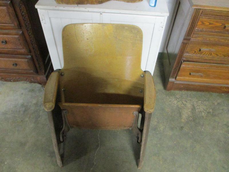 Lot 19 - Vintage Wood and Cast Frame Auditorium Chair