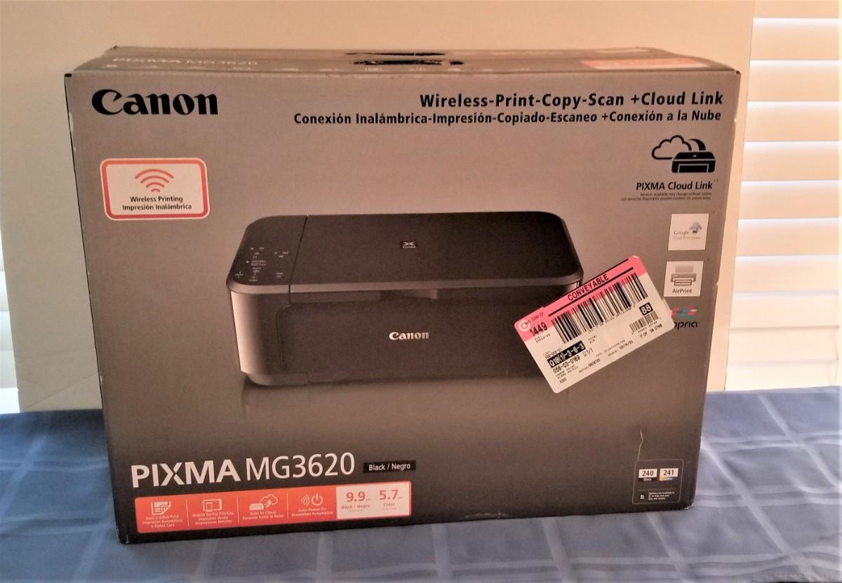 Never removed from box - Canon Pixma MG3620 printer - scanner - copier - wireless with Cloud link. COLOR. New in box, never used.