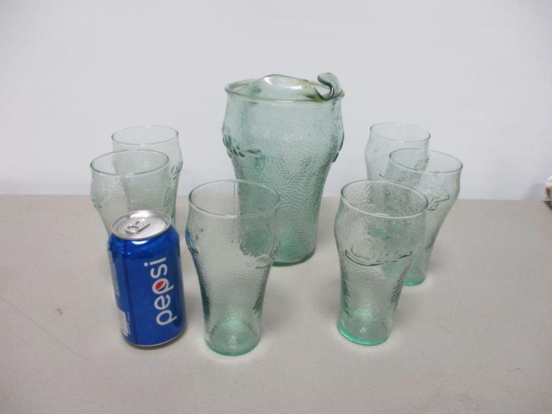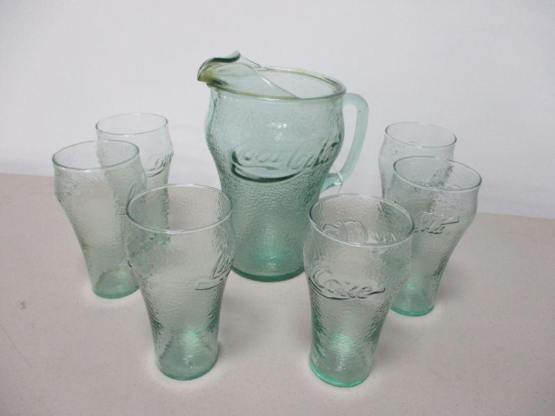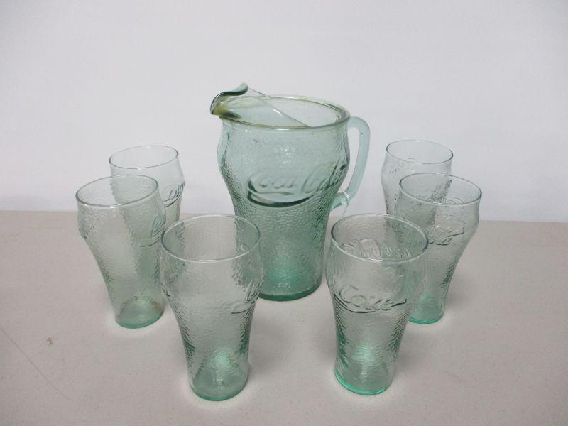 Lot 19 - Coca Cola Glasses and 1 Pitcher with Handles