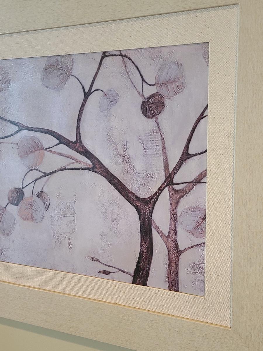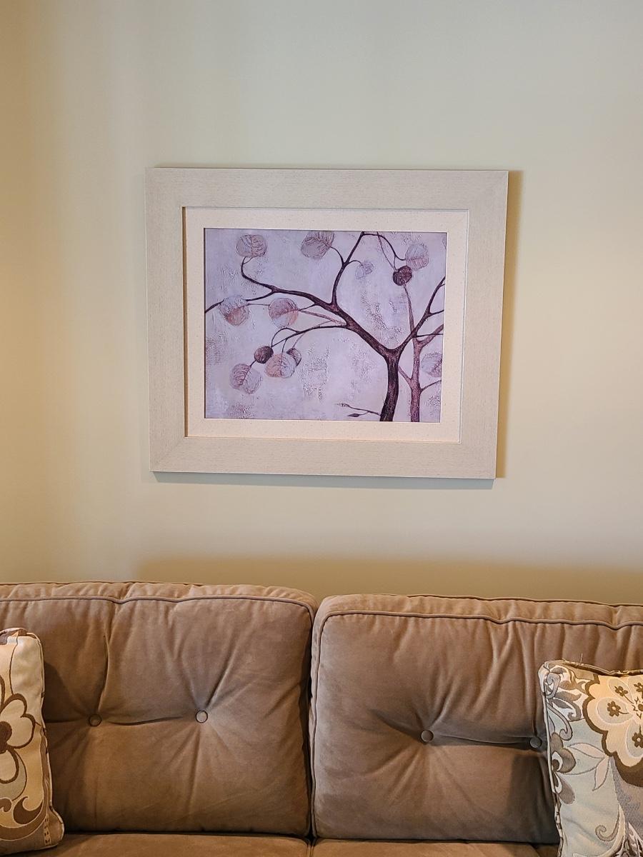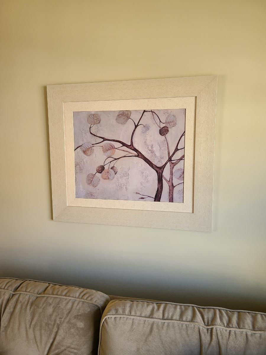 34 x 28. Soft tree branches, not under glass. Framed. The pictures show condition, measurements if taken, and what is included in the lot. Due to the large amount that we photograph and the time frame, we are not always able to take measurements. All items unless noted, are pre-owned and have been used. If you purchased furniture, you must bring help. We do not allow one person to carry large furniture out on their own. Bring help, tools and a truck for the safety of our client’s homes, and your personal safety. Any damages that result to the property including walls, and floors due to moving of the furniture will be charged to the buyer. Company policy. Thank you.