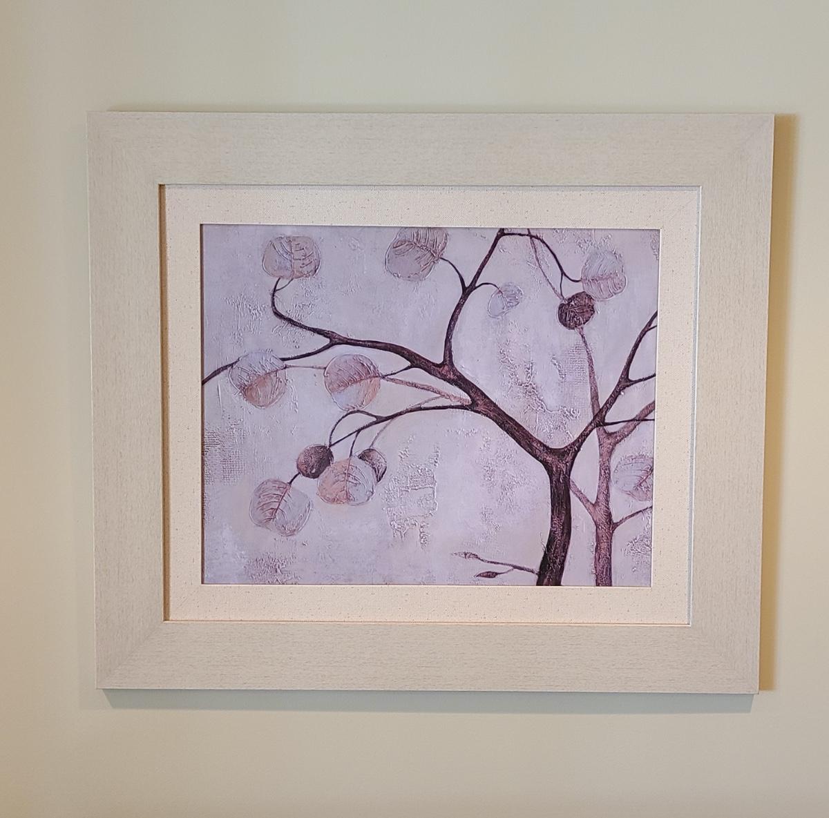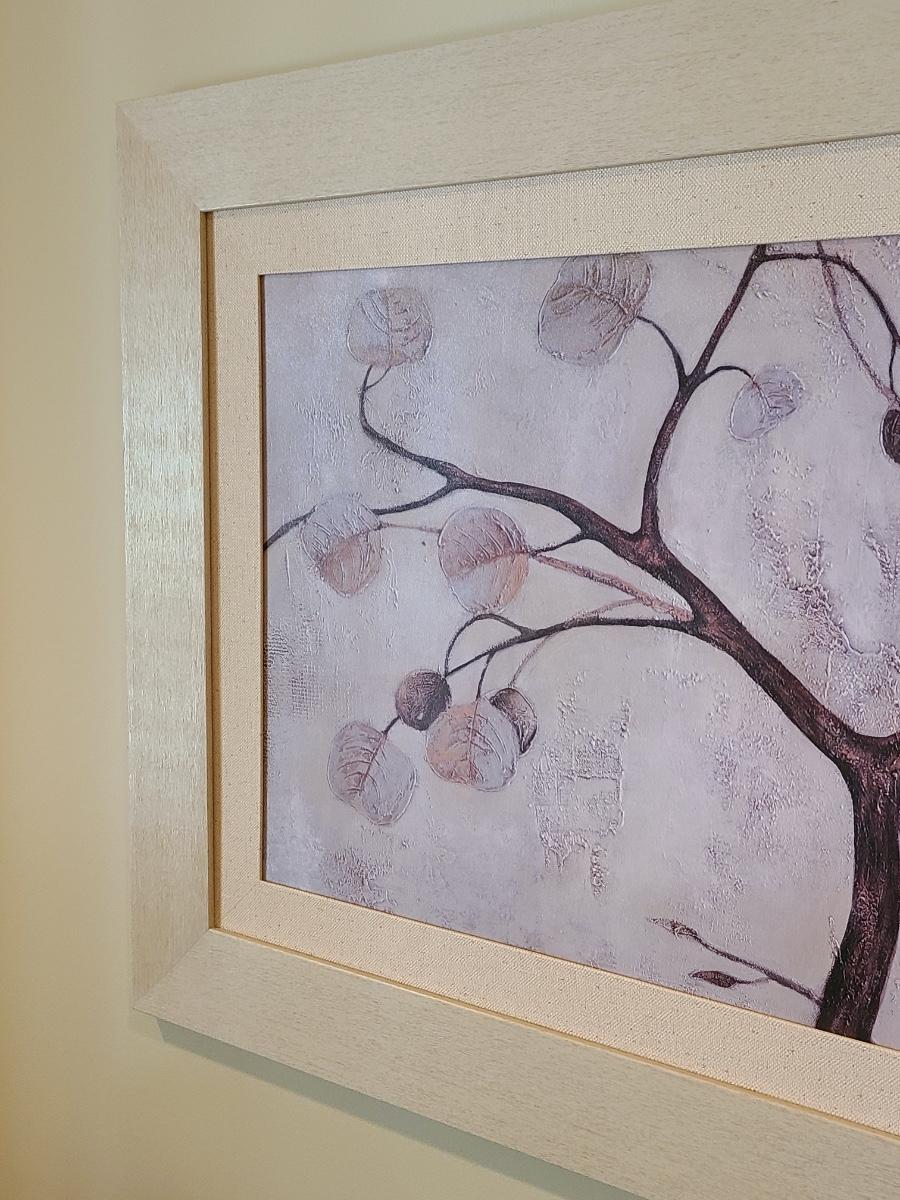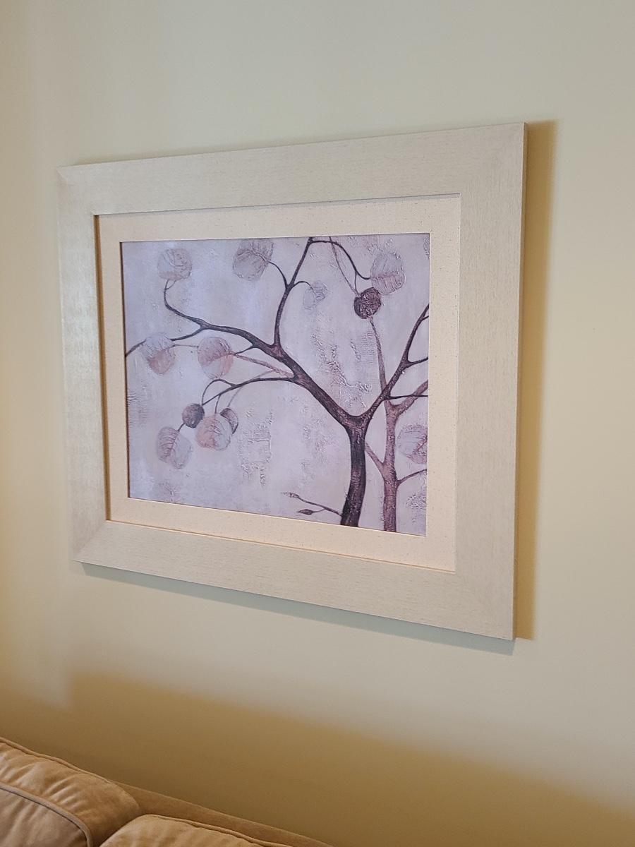 34 x 28. Soft tree branches, not under glass. Framed. The pictures show condition, measurements if taken, and what is included in the lot. Due to the large amount that we photograph and the time frame, we are not always able to take measurements. All items unless noted, are pre-owned and have been used. If you purchased furniture, you must bring help. We do not allow one person to carry large furniture out on their own. Bring help, tools and a truck for the safety of our client’s homes, and your personal safety. Any damages that result to the property including walls, and floors due to moving of the furniture will be charged to the buyer. Company policy. Thank you.
