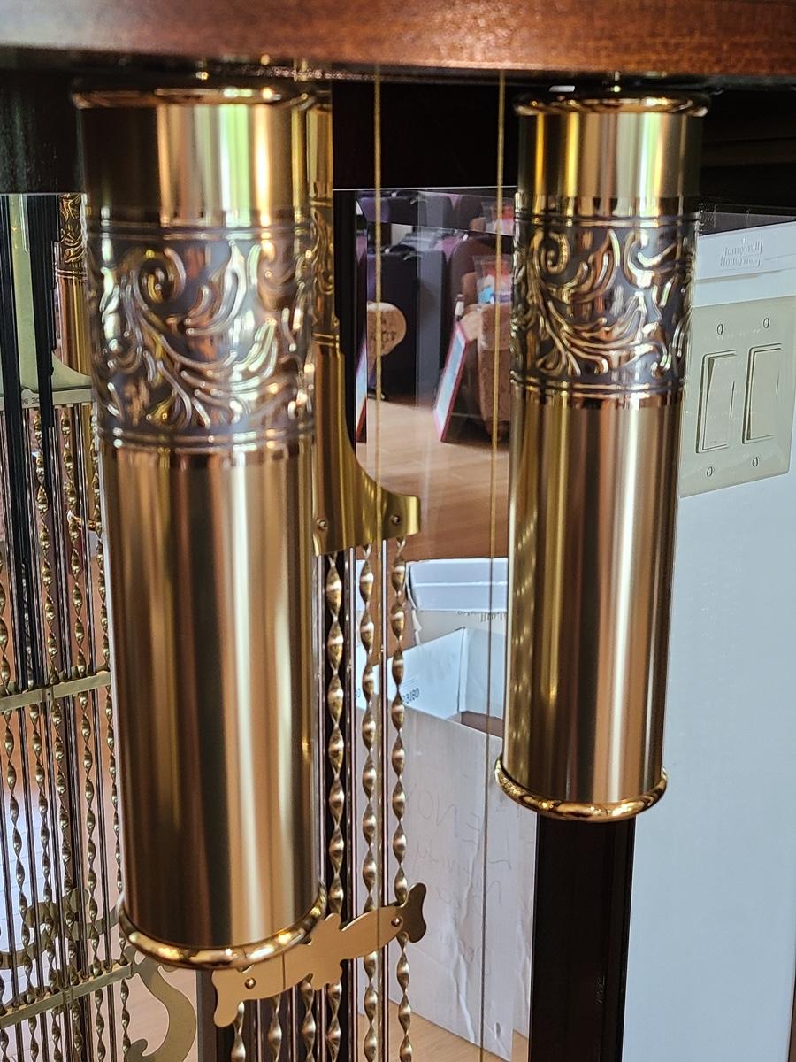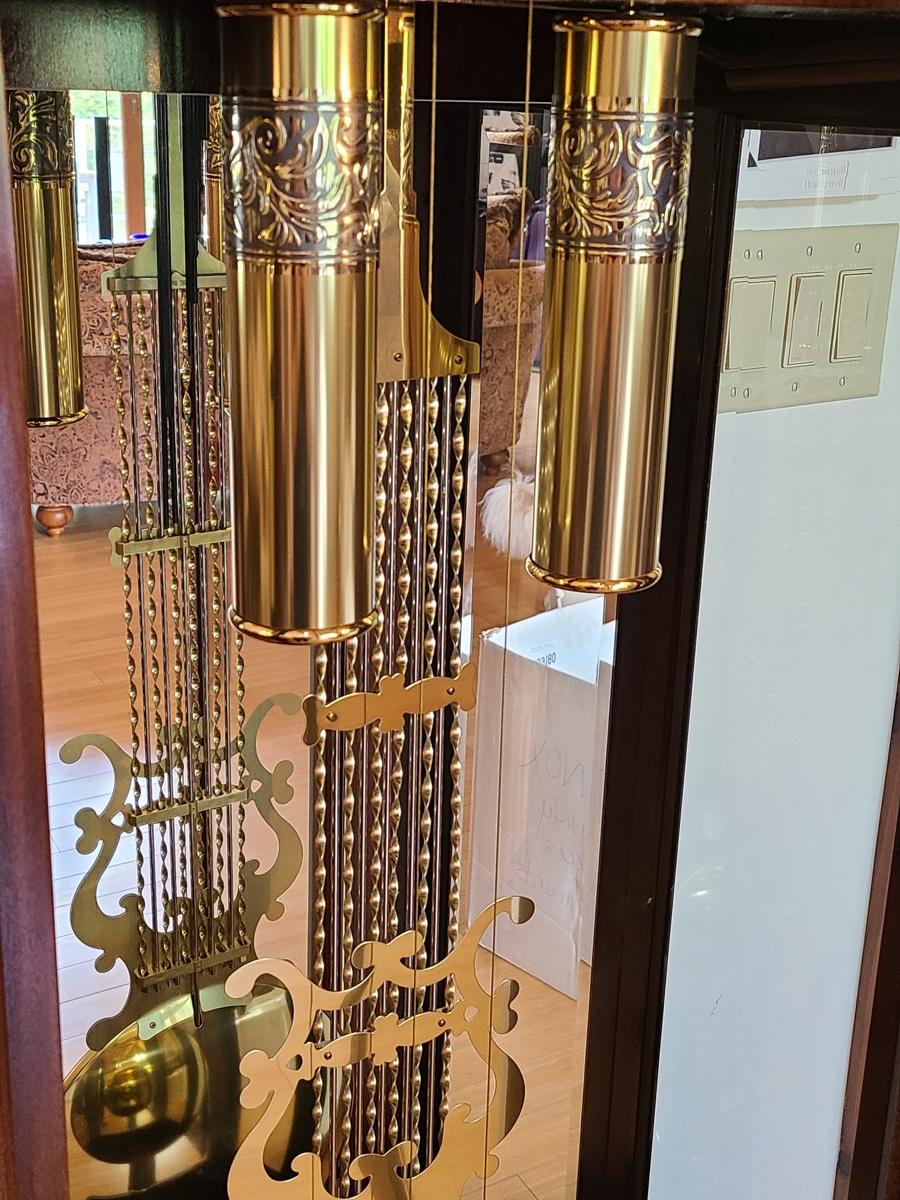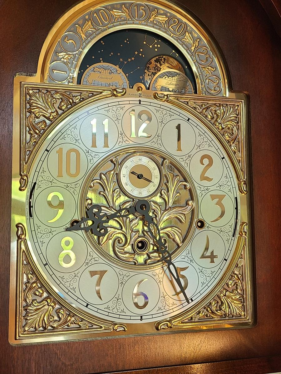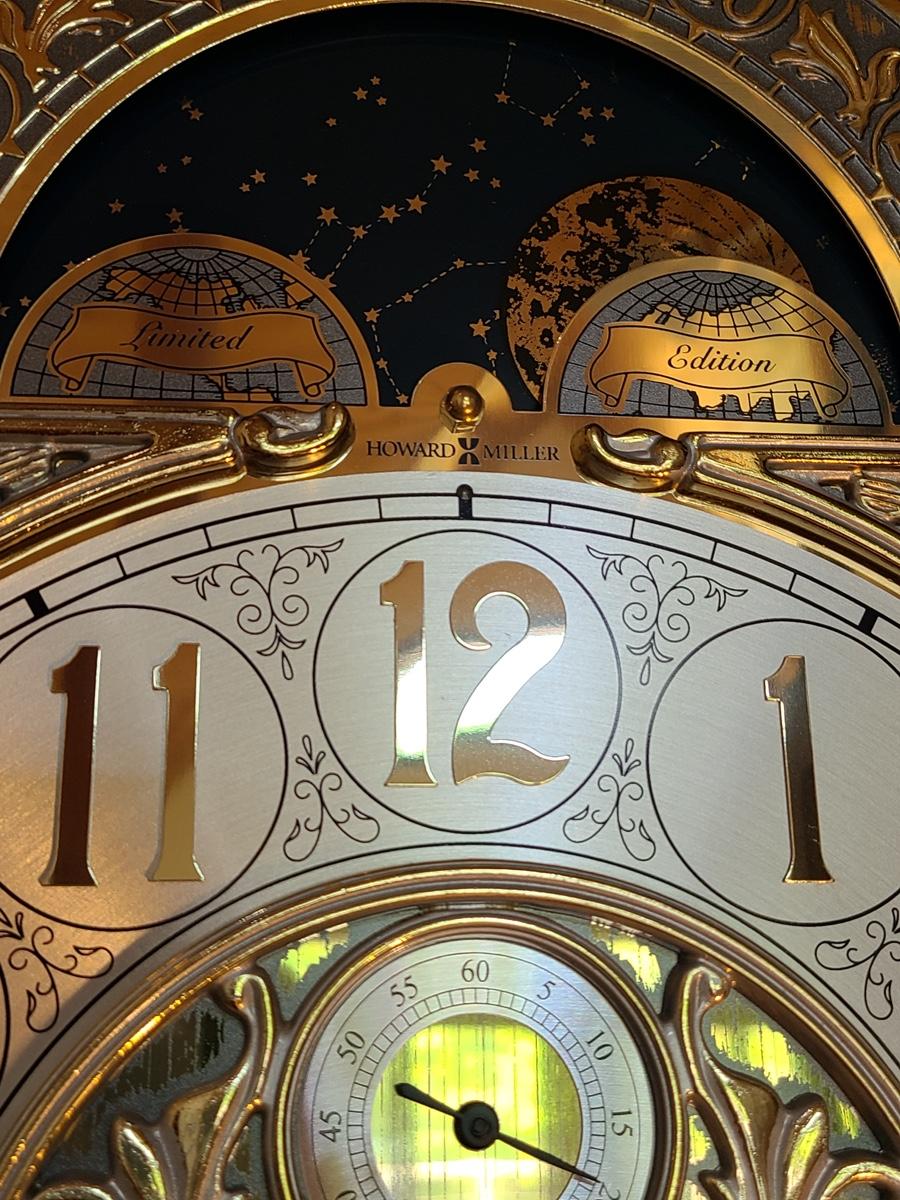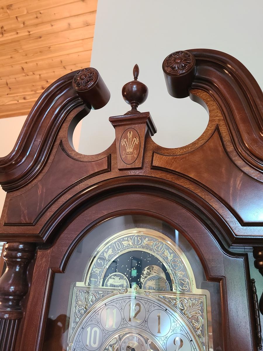 28x17x96 inches tall. Gorgeous! Howard Miller Grandfather clock. Interior has a gifted name plate, other than that still looks new. Gorgeous piece! Located on first floor by front door, but you will need to move down three stairs on porch. Please see all pictures as they are the best representation of the items. The pictures show condition, measurements if taken, and what is included in the lot. Due to the large amount that we photograph and the time frame, we are not always able to take measurements. All items unless noted, are pre-owned and have been used. If you purchased furniture, you must bring help. We do not allow one person to carry large furniture out on their own. Bring help, tools and a truck for the safety of our clients homes, and your personal safety. Company policy. Thank you.