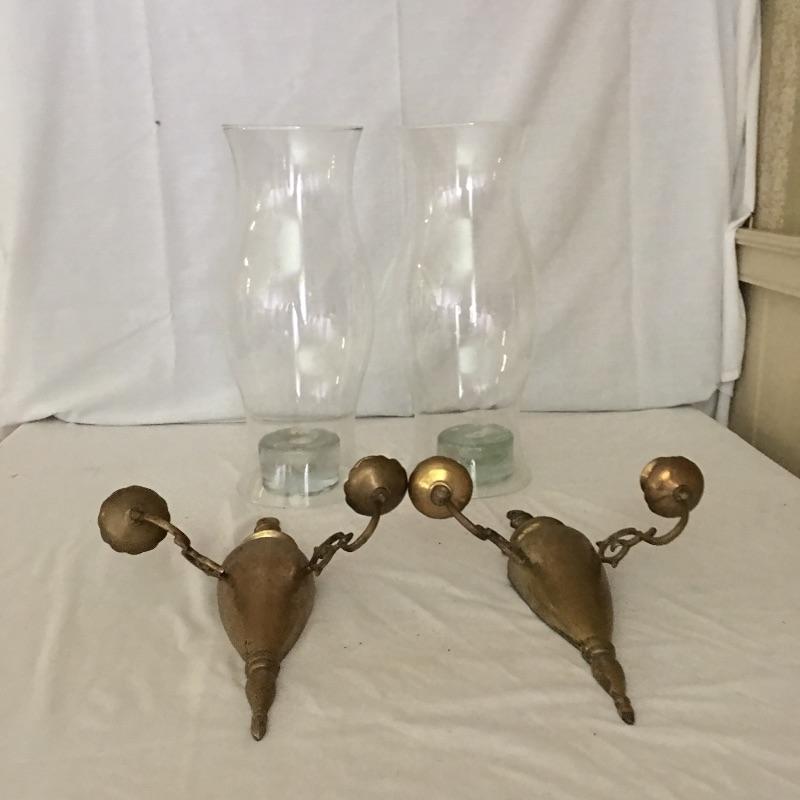 Lot 19 - Hurricane Lamps & Brass Sconces