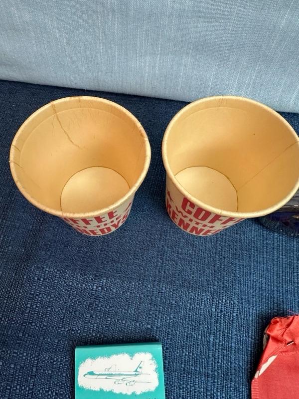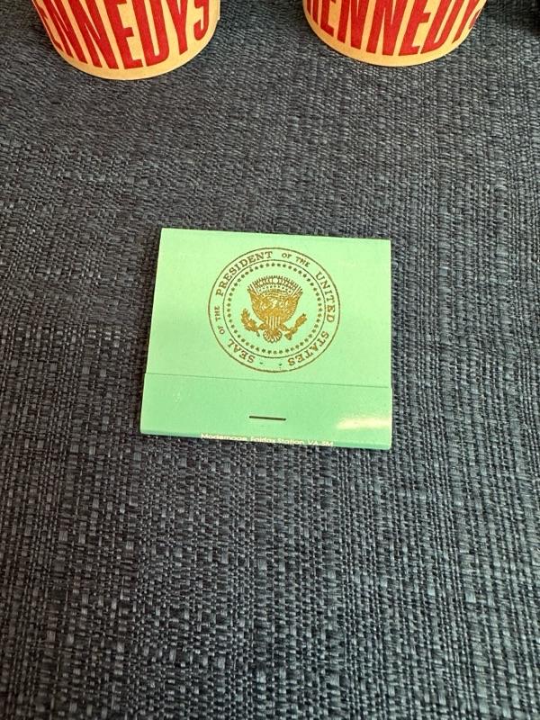 JFK Pin, ribbon, paper coffee cups and mini bottle plus Airforce one match book