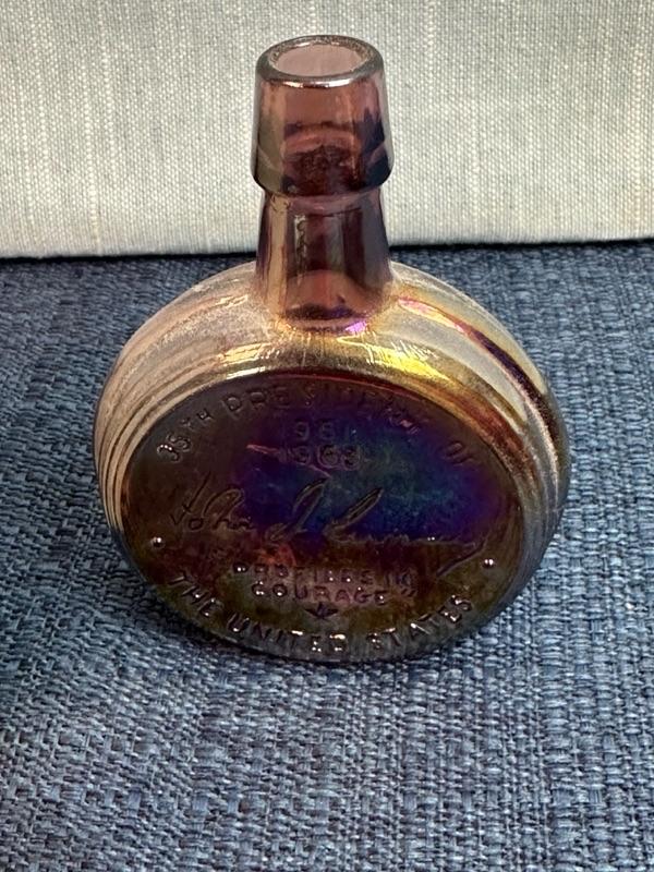 Lot 19  JFK Pin, ribbon, paper coffee cups and mini bottle