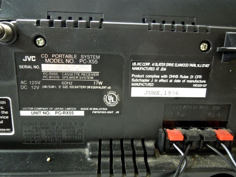 Lot 19: JVC PC-X55 Portable Boom Box System with Cassette Tape Player