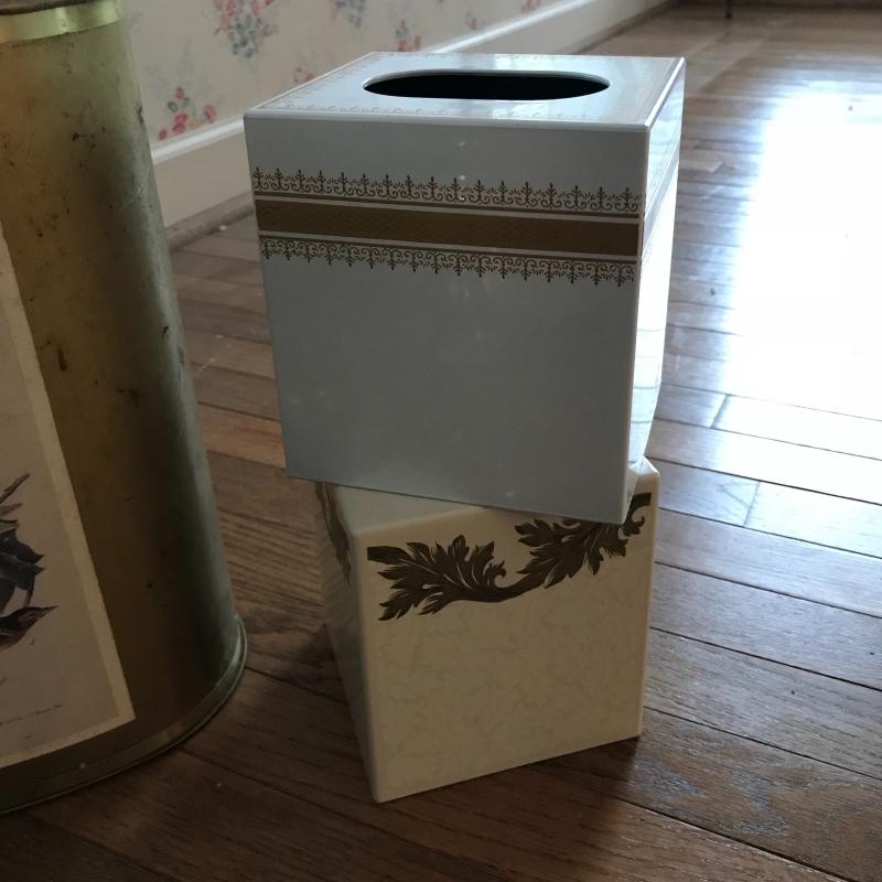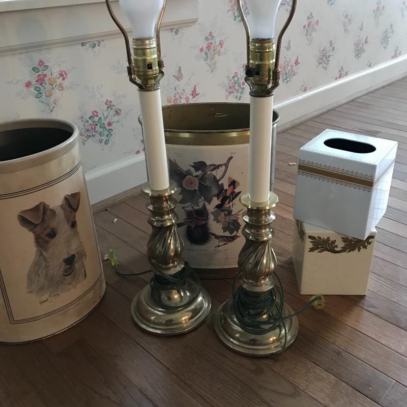 This useful lot contains a pair of matching lamps (25.5” tall), two trash cans, and two tissue box covers. No shipping available. Local pickup only in Flatrock, NC.