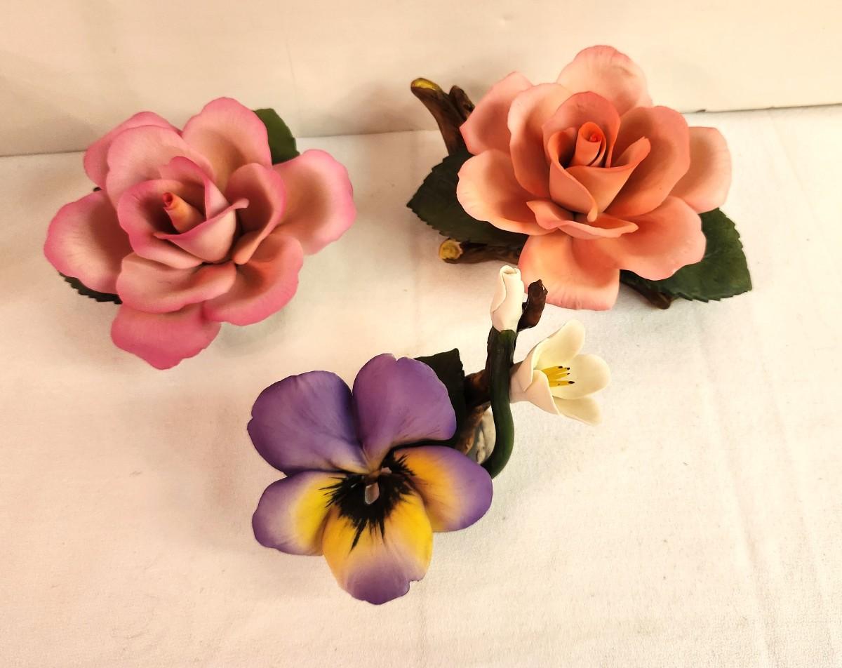 Lot #19 Lot of 3 Porcelain Flowers - marked Napoleon Italy